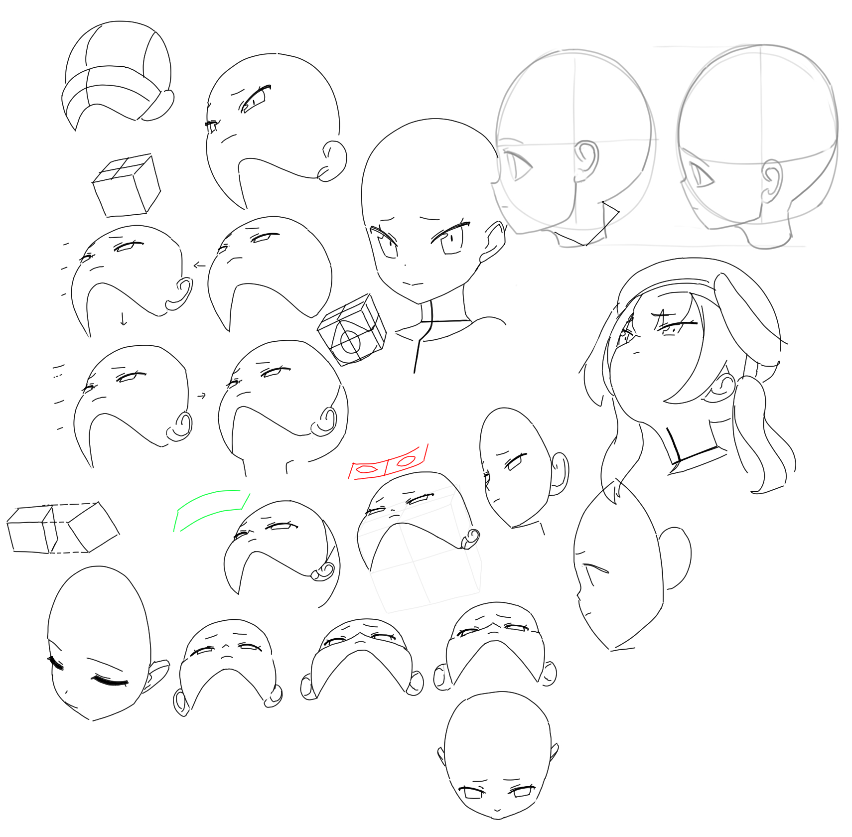 Did some reading, tried drawing some loomis heads and also started watching a few videos and drew some boxes. Got bored and tried drawing another girl without any references or anything. Truth be told it feels like while I didn't gain the ability to draw prettier pictures I've streamlined the ability to make pictures at the level I'm currently at. Didn't need to use the mesh transform tool to make the limbs and eyes look like they were where they belonged this time with the exception of the head, which I originally drew a little too close to the right shoulder. The loomis head practice helped a little bit but I didn't really try to use it much here I just sort of kept a mental not of how things are "supposed" to be.