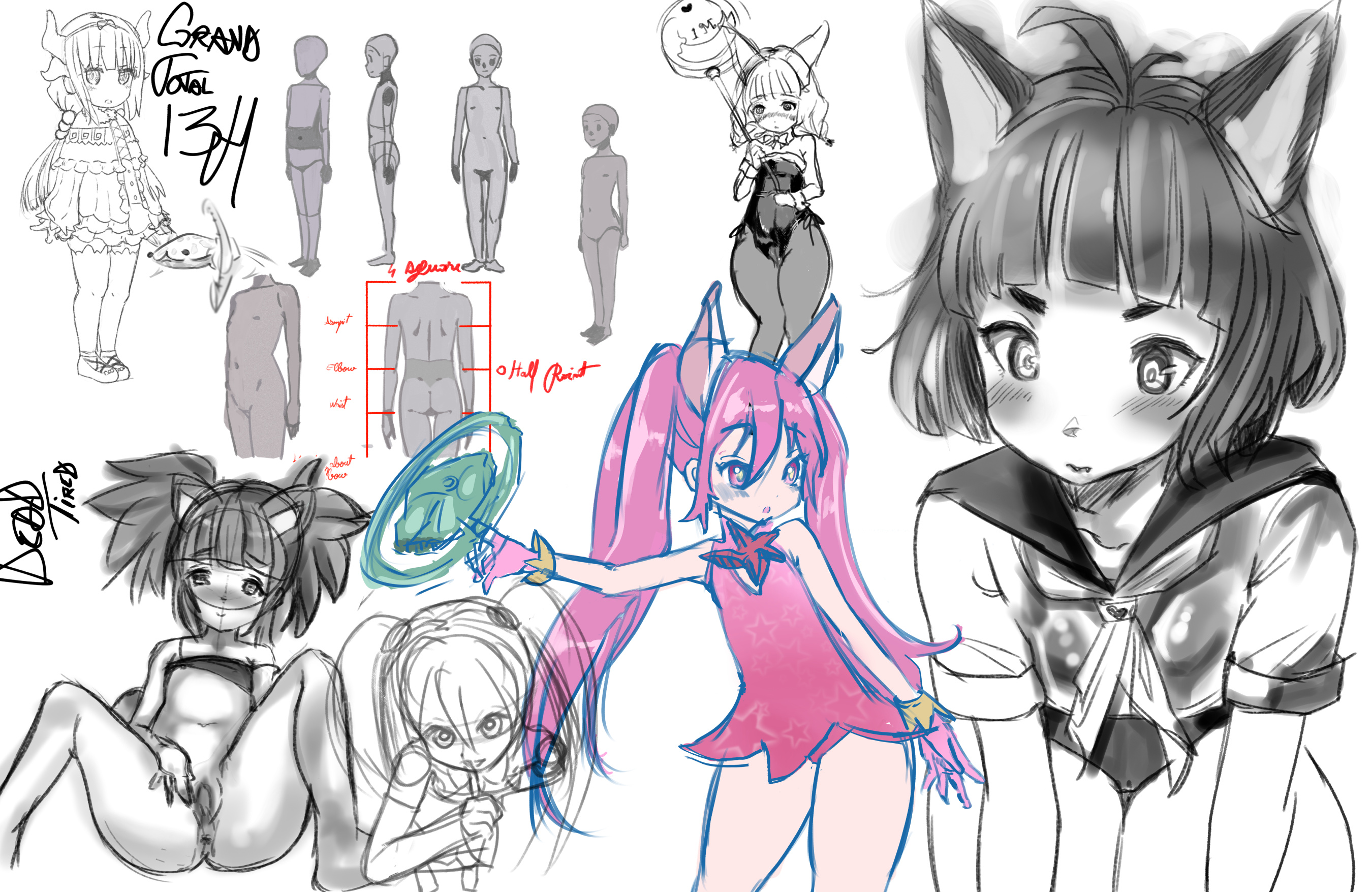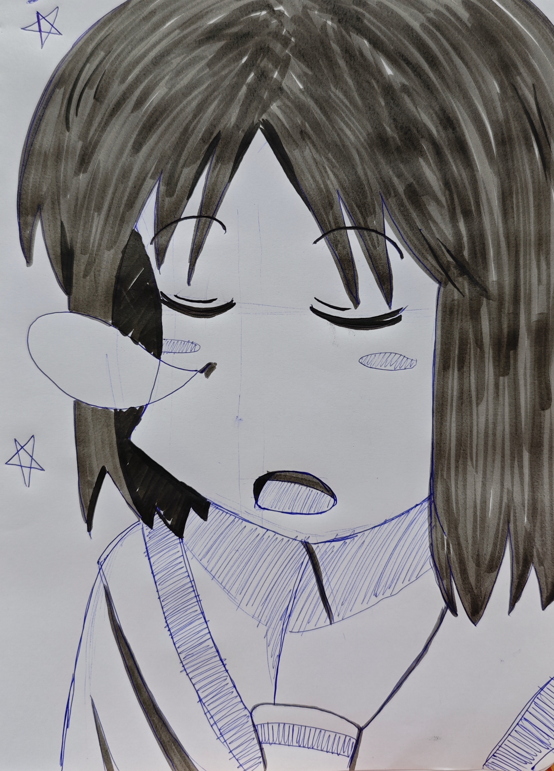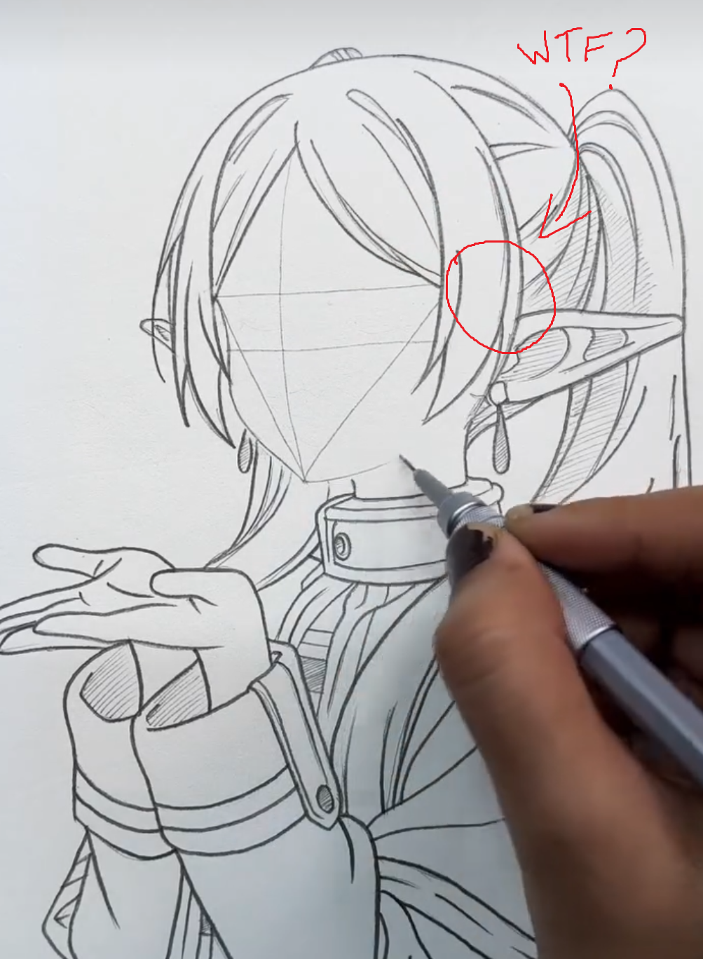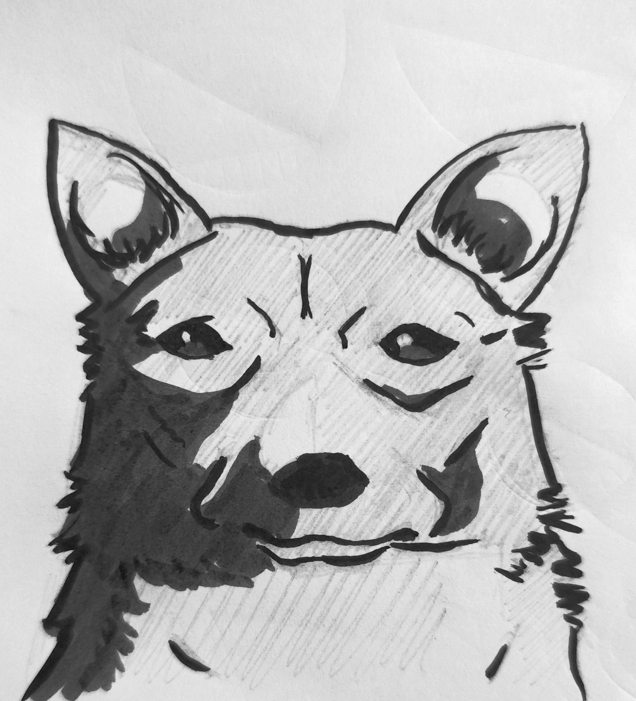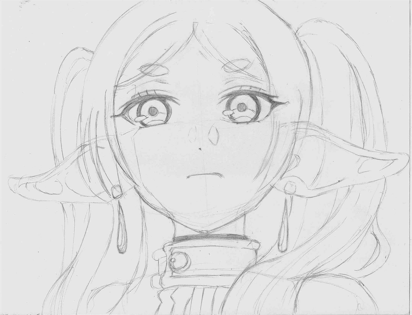 Well chat I messed up, I ran out of space. Might have to redraw to complete the rest of her head and ears.