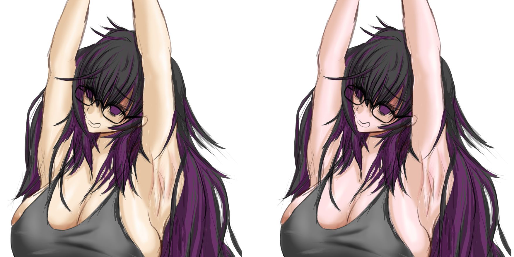 >>7863130Doesn’t it depend on the lighting of the scene? The first one felt like if she stayed in one of those cheap hotel room lighting, second one feel like if she had only been gooning to her computer at the middle of the night. Preferred the second one because it looked much cooler.Btw, great coloring on both end