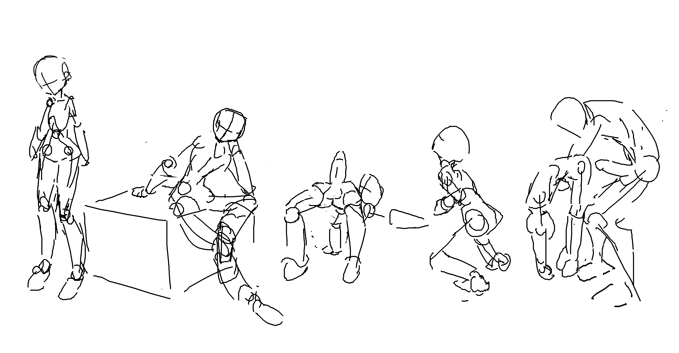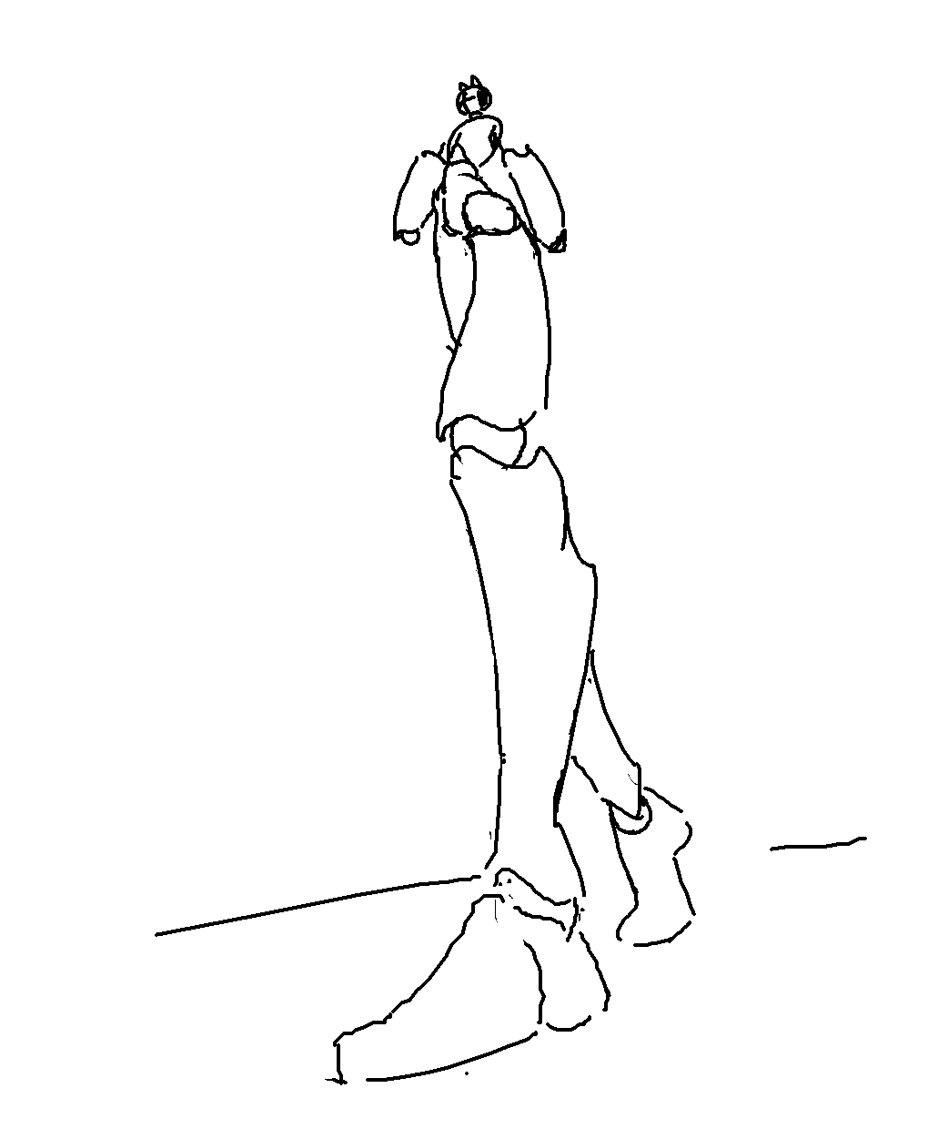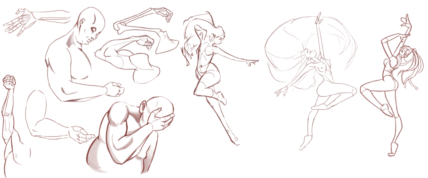 >>7863095Keep the gesture simple. One line for flow, one for a stabilizing force, large masses blocked in loosely. This doesn't work unless you know 90% of what you're laying down and why (eg, the legs and pelvis obscure the stomach in a shot where the character is vaulting over something and coming "at" the camera). Then use wrapping lines to establish what is where. If something is receding, just wrap it a few times to show it moving "back" into the picture plane. Reverse for whatever direction, really. This helps keep things organized for when you clean up and establish the anatomy. If