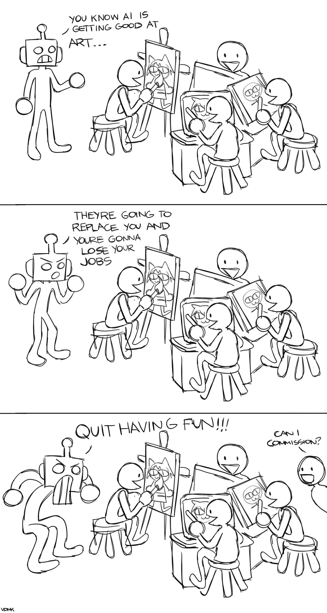 >>7862994>sharing works publicly or they want to surround themselves with other artists who won't challenge the gains they've scraped togetherOr they actually draw and use programs where people actually draw? i'm just here to punch down cause i hate zoomers.
