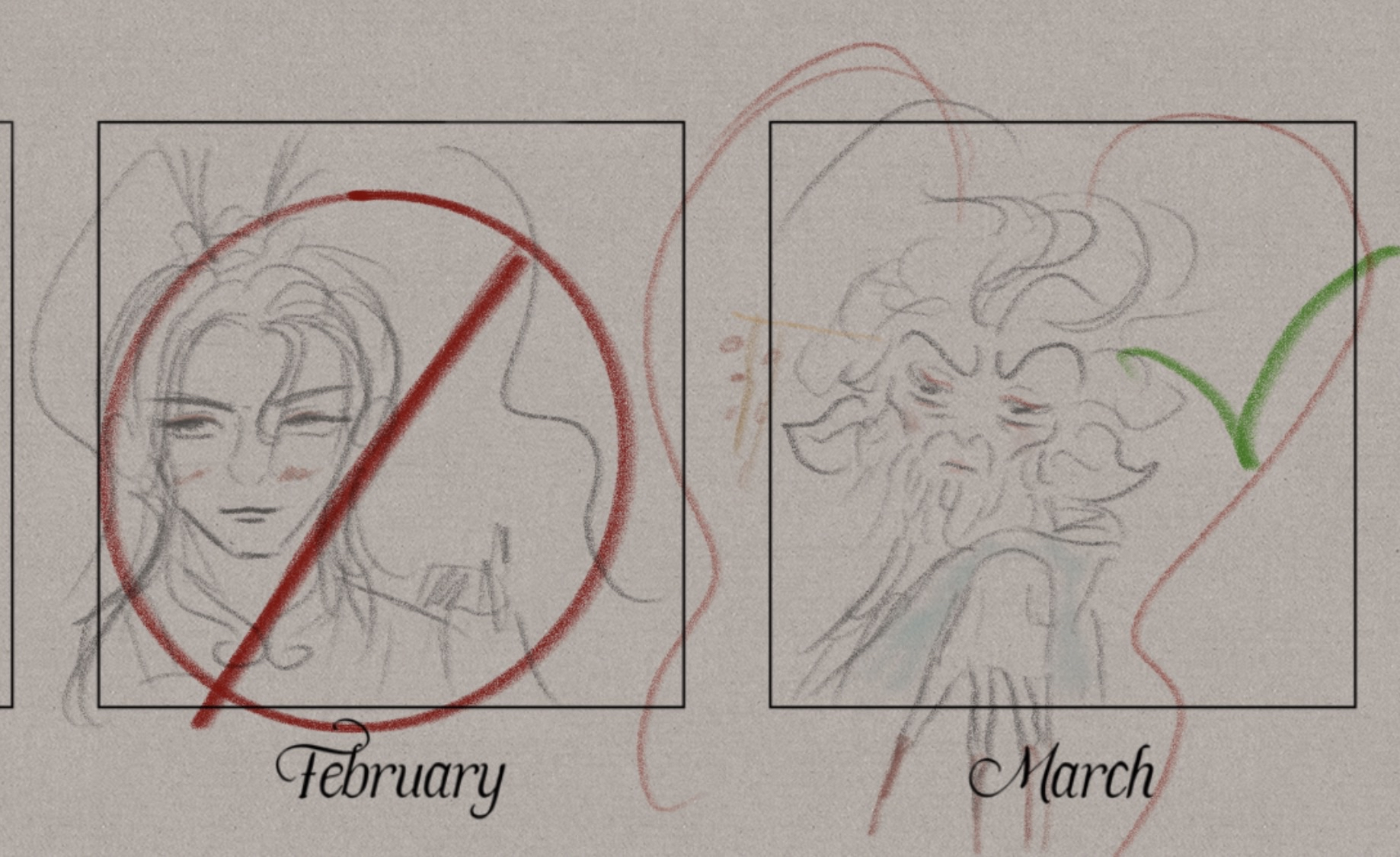 Hello there friends and schizos, today is my 30th day drawing, I stopped dailyposting because the schizos were annoying. Anyways here are some heads I drew today, I've mostly just been drawing heads trying to apply loomis method to reference pictures. I'd like to learn how to shade and also improve my line quality so I think I'll try ink sketching some objects and animals next month. See you all when I see you.