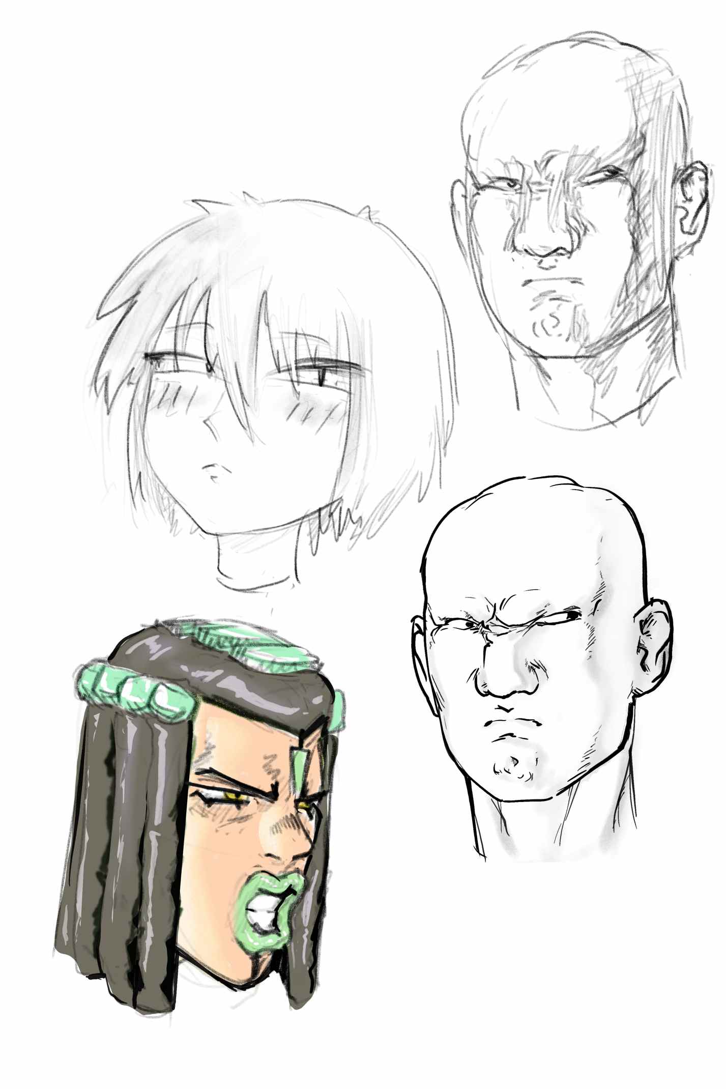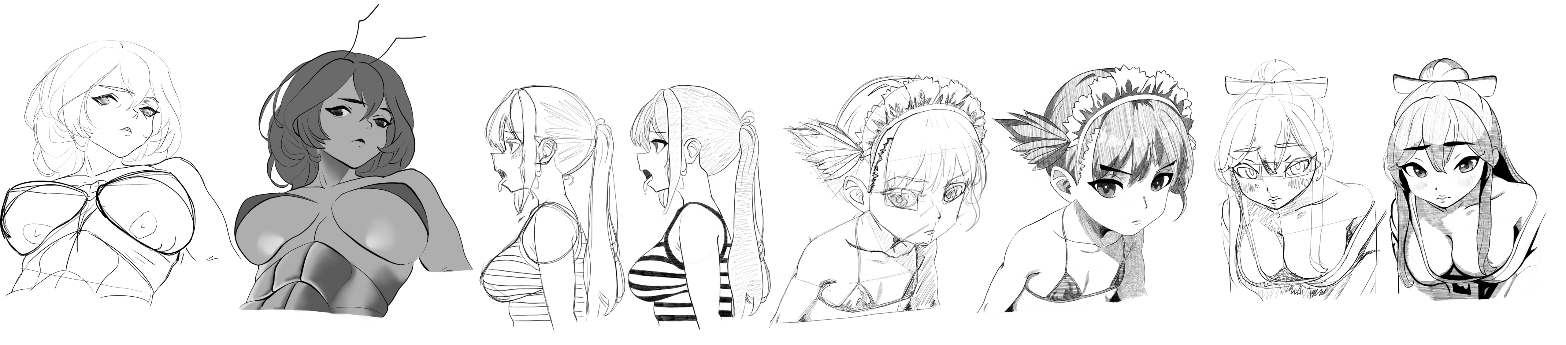 I decided to see if my fundamental grinding is paying off and tried to construct some anime heads. I'm really happy with how they came out, but these took a ridiculous amount of trial and error to get looking good. At least when it came to the hair, I think I'm finally starting to 'think 3 dimensionally' or whatever the fuck that means.