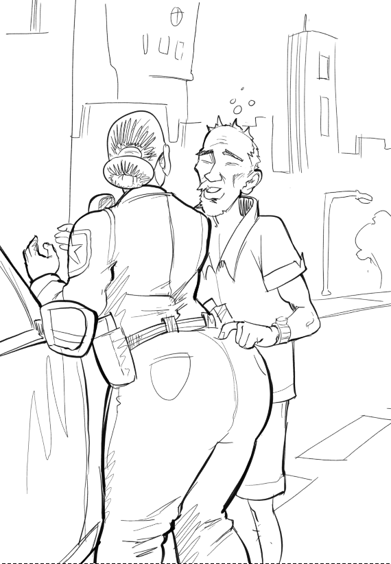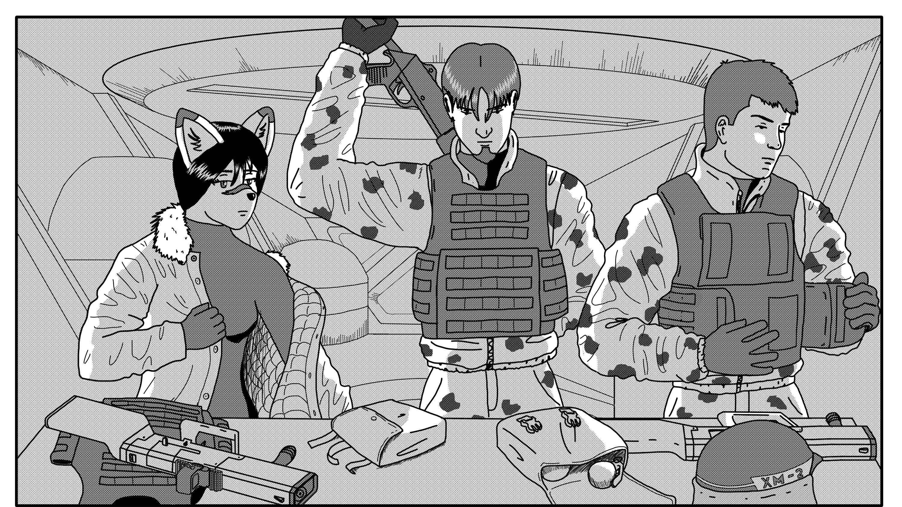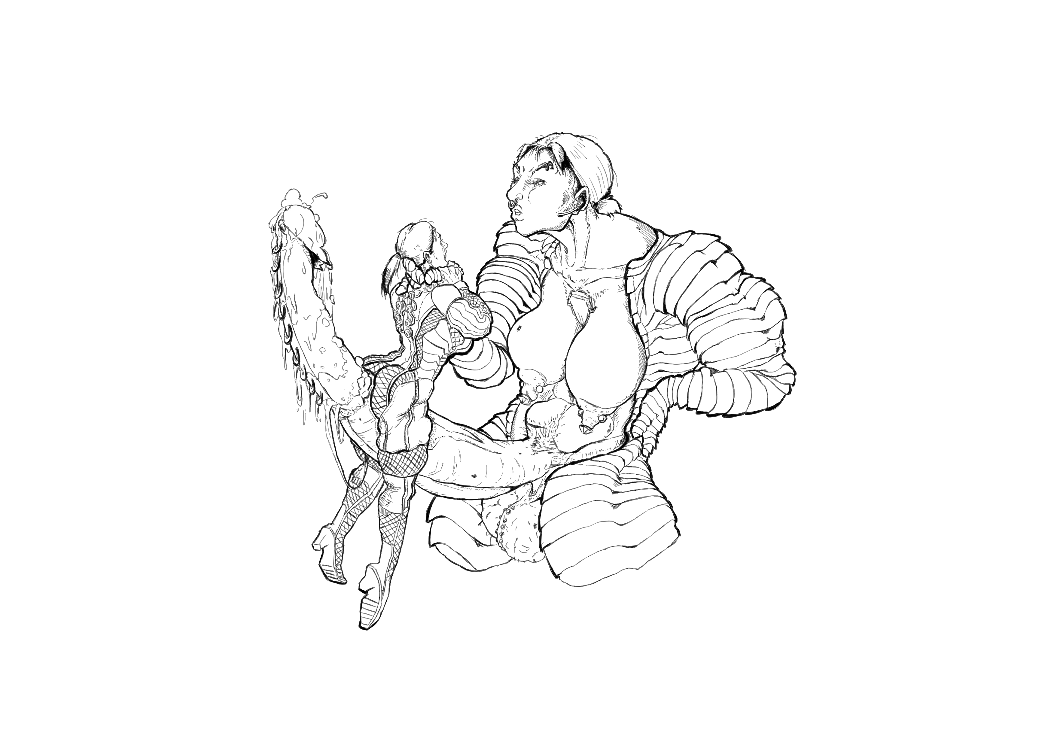 >>7869675Did you already draw the whole guy NAKED on another layer? I've noticed pro-level artists draw each character in full on different layers and erase the mask layer to show overlapping shapes. (I can TRY to redline but I'd definitely utilize a 3d model for extra help)