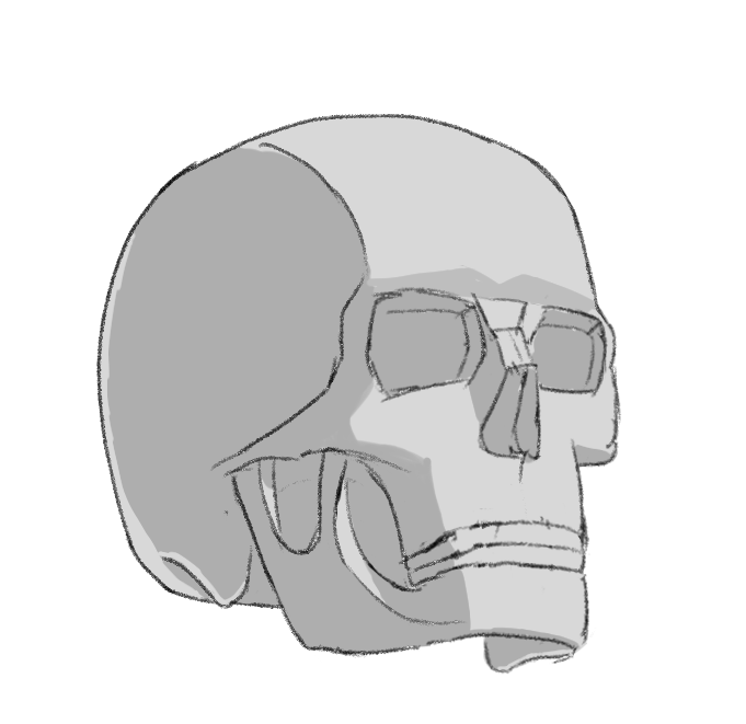 >>7869500I'm not attached to the box, and maybe trying loomis next time is a good shout. I don't really have an established method yet, but I liked the idea of the box, since it was closest to what I was doing with skulls and it sets a clear 'goal' perspective/scale for me at the start that I can shoot for.