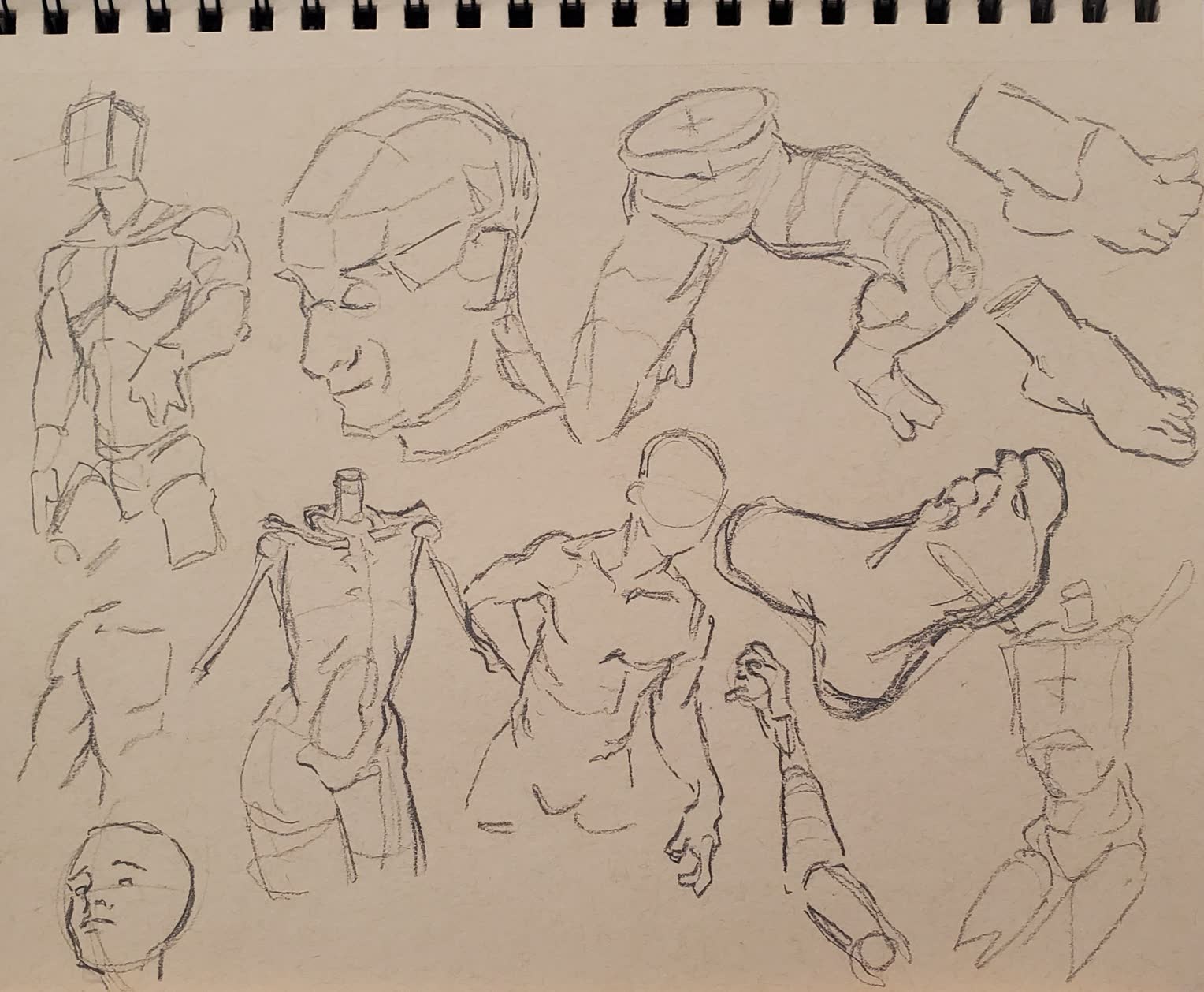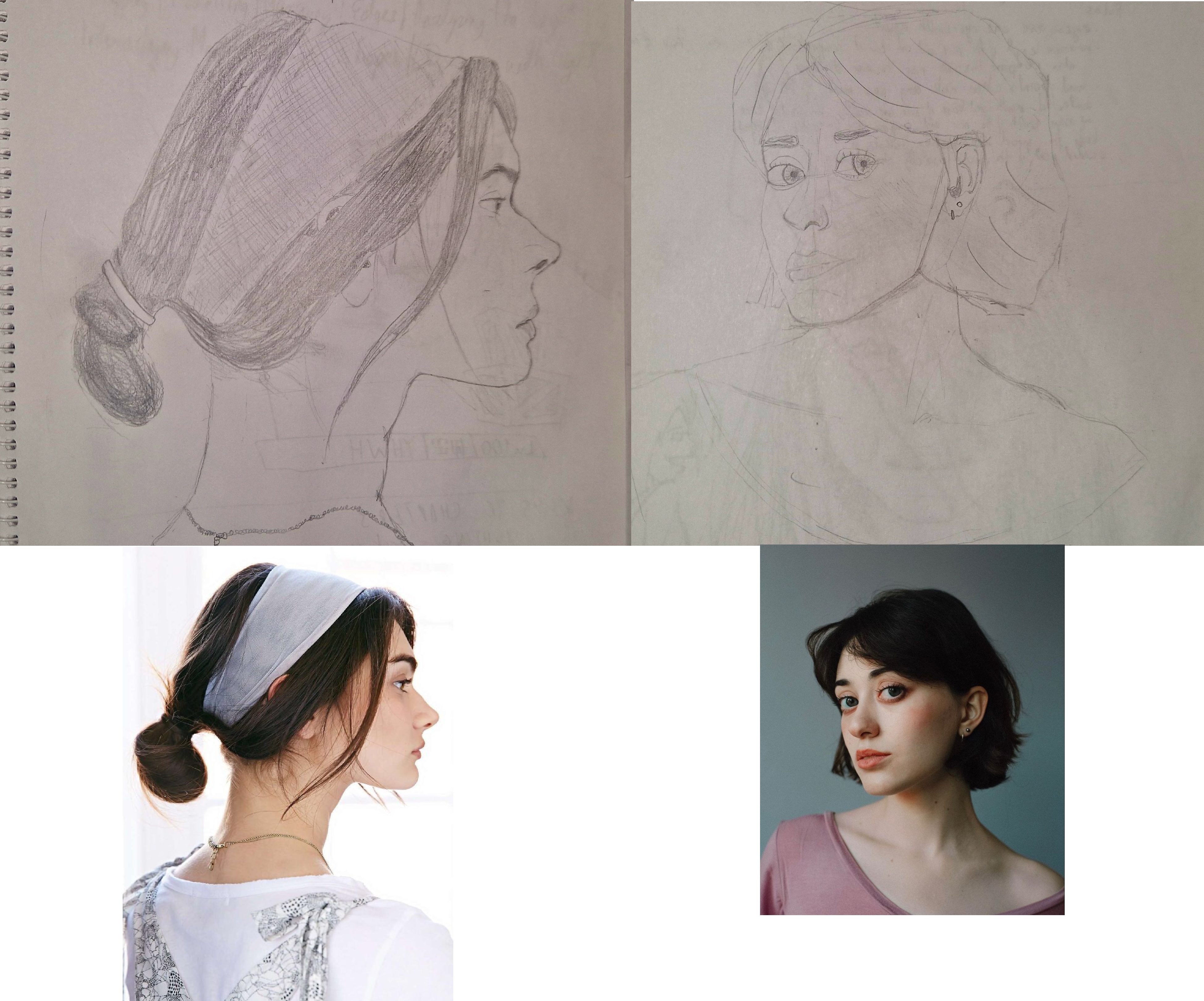 Made another project from KtDNot sure why the author recommends contour drawing, while I constantly hear and read about doing construction while drawing people. I end up erasing and restating a look to get correct proportions. I think the end result looks passable, but I still managed to get certain things wrong and, to be fair, those drawings don't really look like the references. There are also issues like the nose being too small or back of the head being too far.Thoughts?