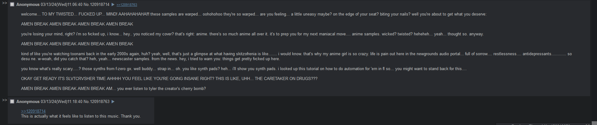 >>7876361crying on anime imageboards will unrape someone or something