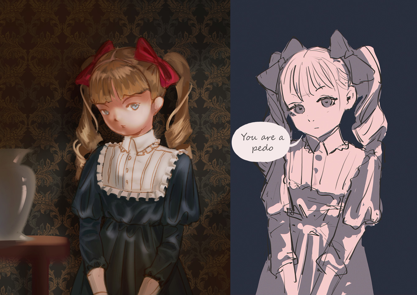 >>7876449>poorfags can't post drawings of 2d anime characters with small breastsYou can, just don't be perverted and clothe them. >Can't receive 20$ for a commission$20 can't wipe your ass>Hated by normies they're not your clients>and reported by other pedos.just don't break the rules on social media