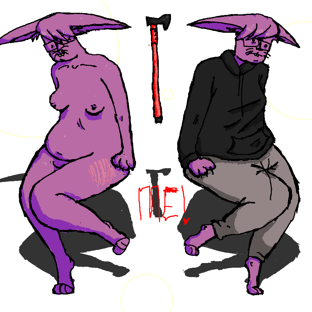 hope i dont look like my fursona? well im not a purple cat but im a fat girl w glasses
