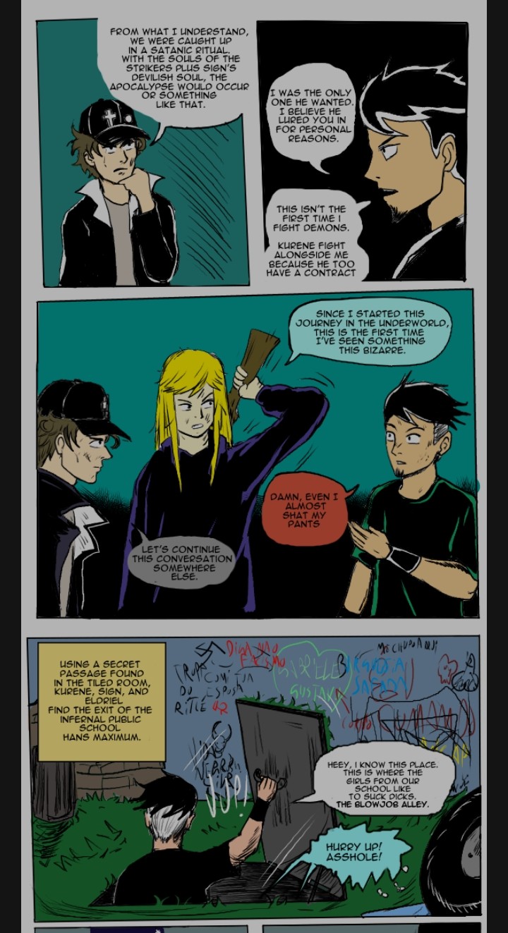 >>7878919>YA demon hunter slash ExorcistThey are actually fighting satanists. The premise is once you see what you shouldnt see, there is no turning backIs there any twist to it? There are 2 major ones >Do you consider this a 'pratice project' or is it the main thing you want to draw?This is actually a reboot of the first comic I did back in 2017. I was planning to continue from where I stopped but the story was too convulted and the art bad. So I decided to make a new thing because I really like these characters.