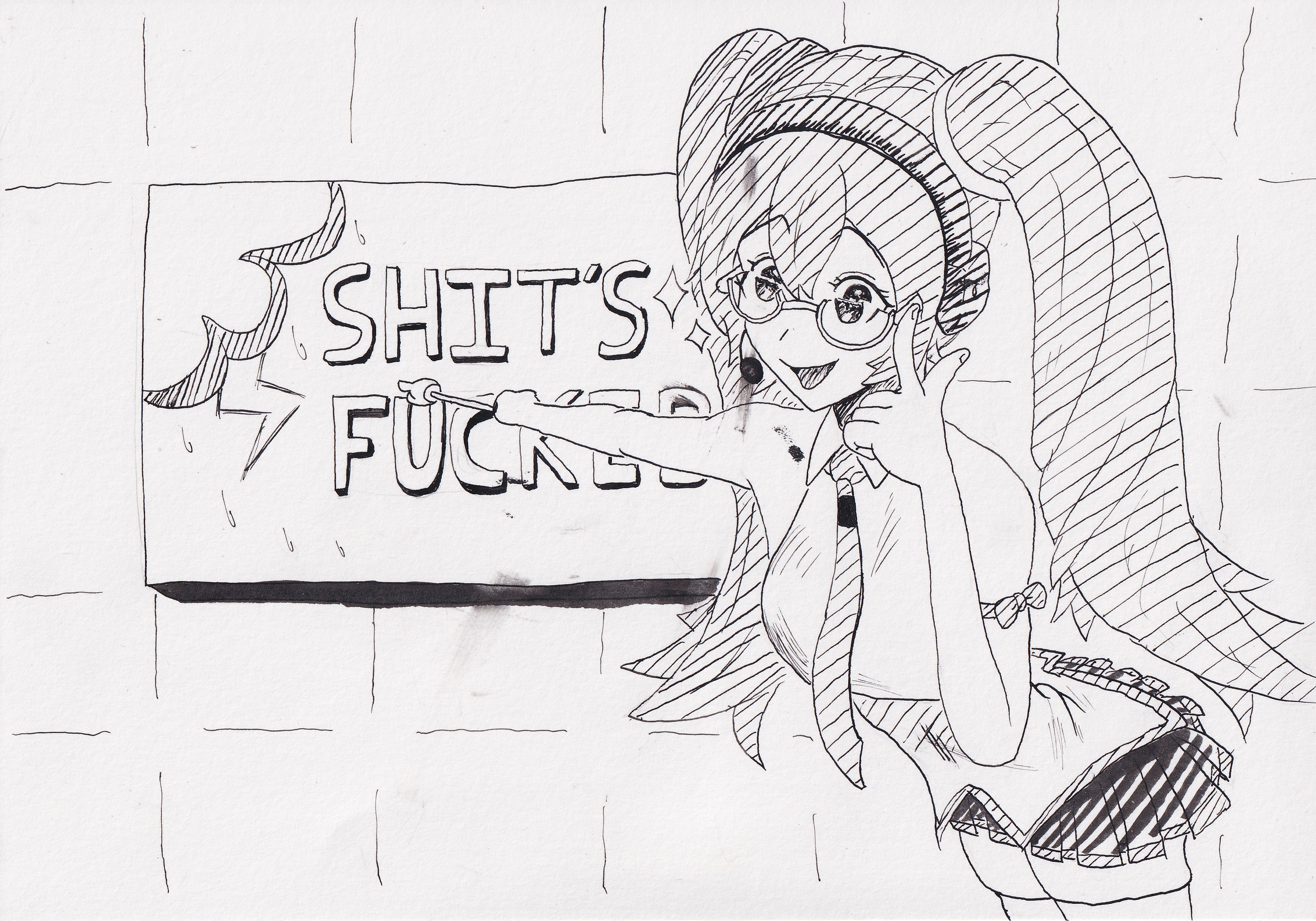 I drew something I'm decently proud but there's still a lot I can work on, the background is simplistic and there's a ton of perspective issues. Lines are cleaner than I usually do them but they can still use a lot of work, the pose is pretty damn stiff and shadows are all over the placeim still proud of it though