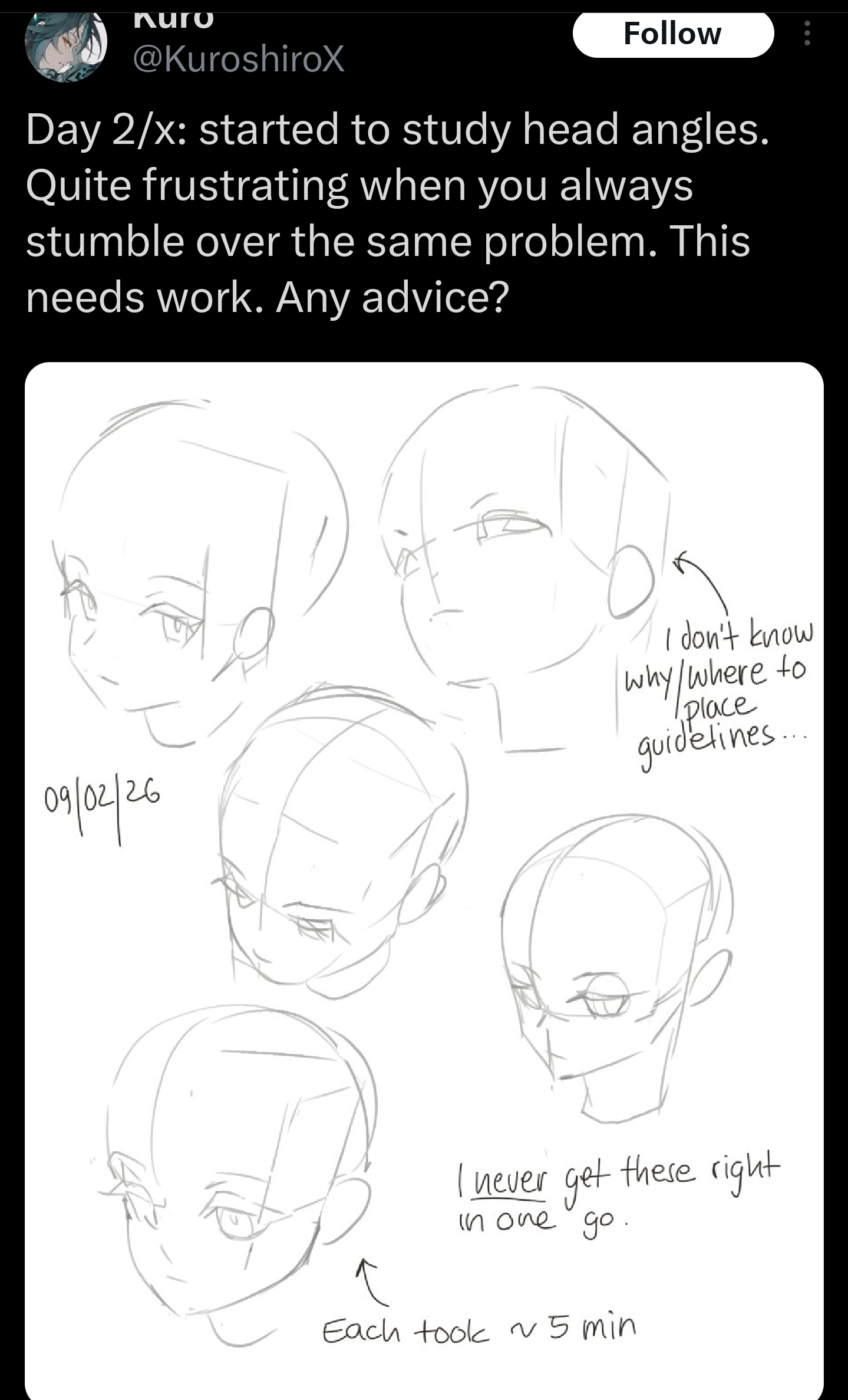 that fucking stupid frieren head meme made me draw only heads for 3 months and now i can't draw anything but heads when i draw anything else than a head i get angry hating my self thinking about giving up drawing wldwlladlwneed art therapist
