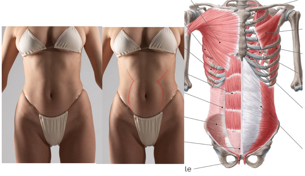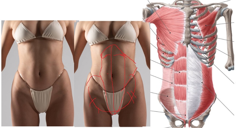 Can someone pls help me explain, why do women's abs make that diamond into round shape when anatomy diagrams are telling me the abs go down in a straight line?