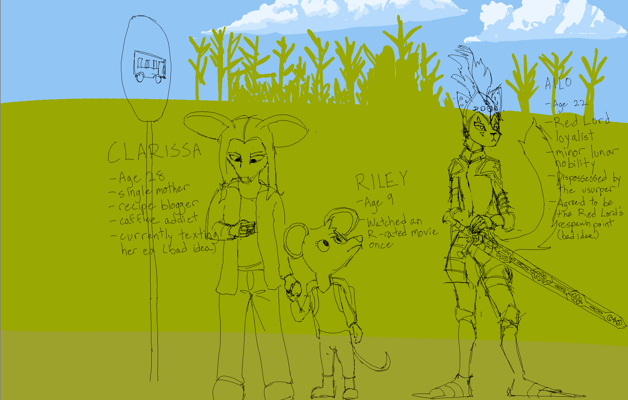 some little refsheets i'm making for a game... they'll be models lateralso drawing with a phone with only your finger sucks