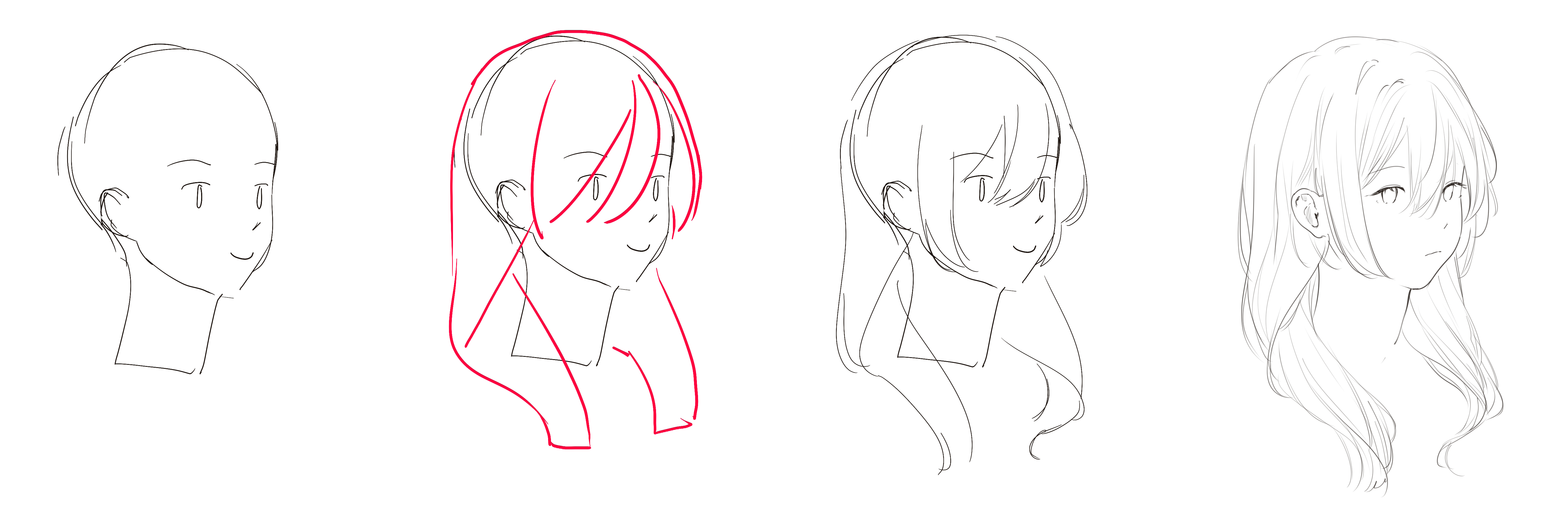 >>7884444not the best way to draw, but still okstep 1 : the headstep 2 : blocking shapestep 3 : first sketchstep 4 : detailyou should only focus on detail in step 4, in other step will make you disorientedwhen you can draw hair better, you can skip step 2 and step 3 atually, step 3 isn't really necessary, but I think it might be needed for begother anon reply >>7884566