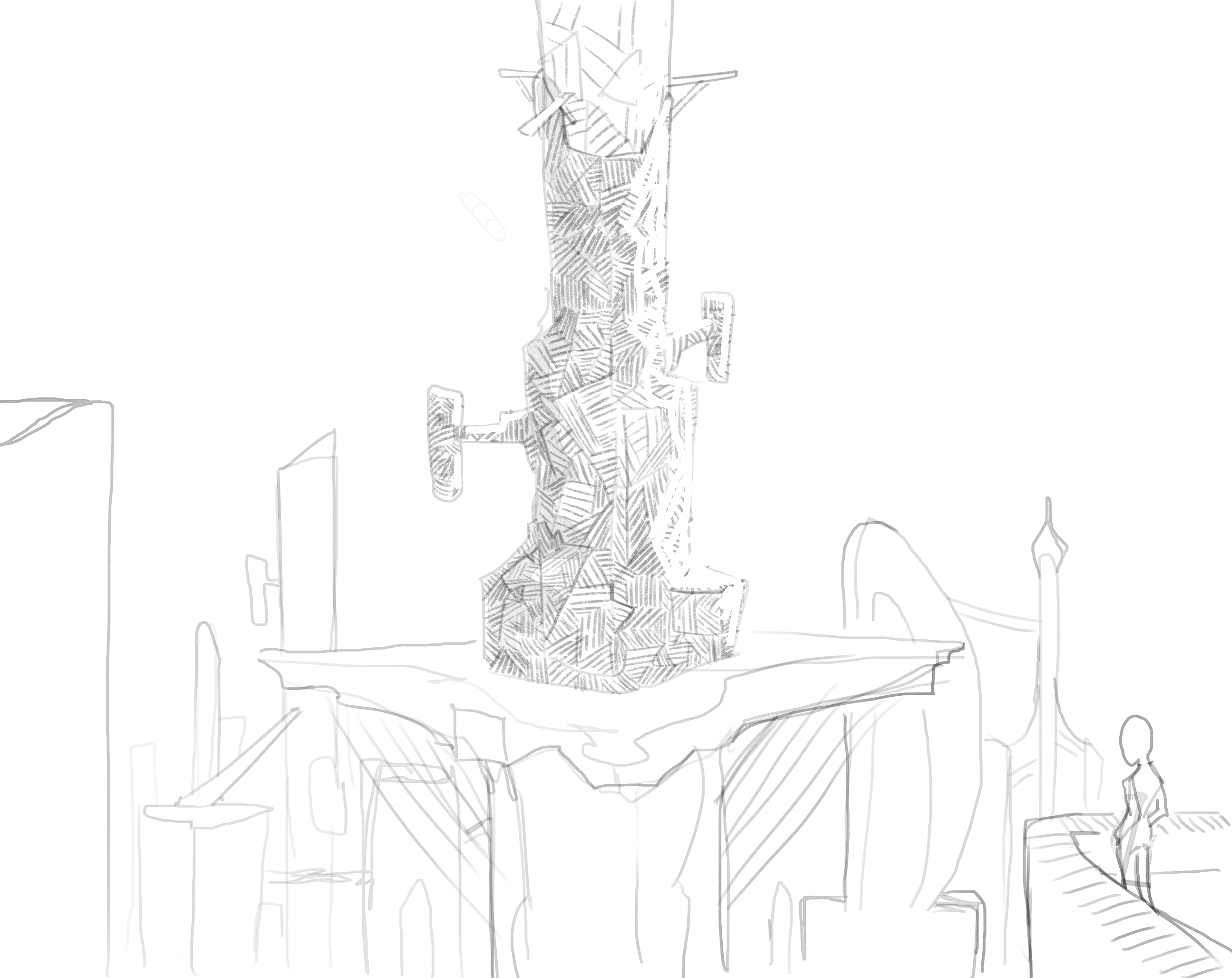 >>7893036needs a more dramatic angle. it feels too static and symmetrical like this at least to mei would make that pillar thing even bigger, shift it either slightly left or right, tilt the whole composition slightly and maybe get some 2 point perspective going on. also make that platform the guy is standing on more visible because it's too indistinct. i mean i'm beg at environments too but this is just how i envision a ''beter'' version of it in my imagination. watch more movies