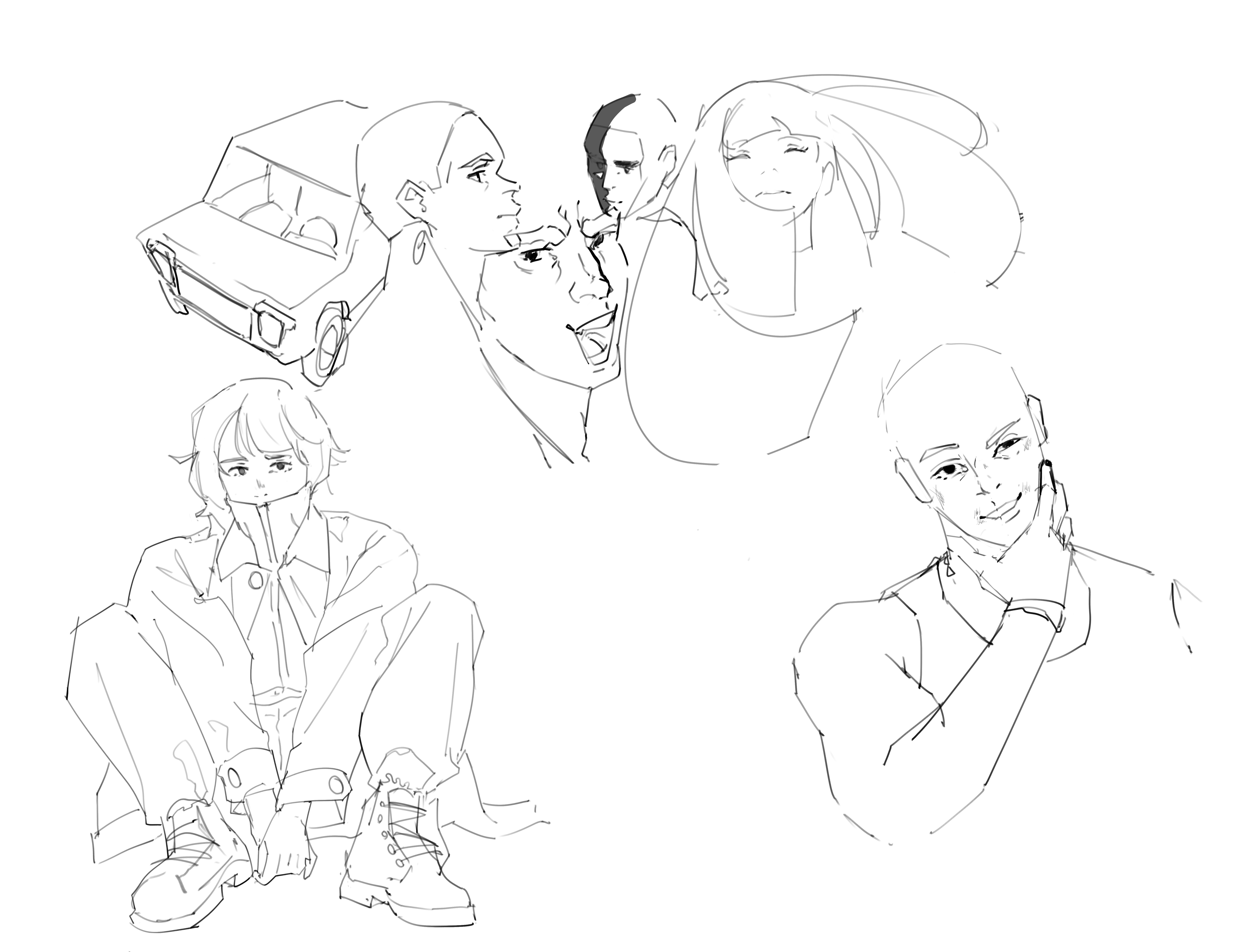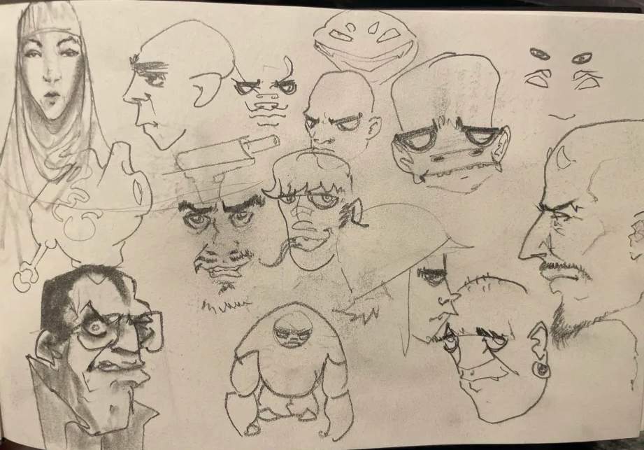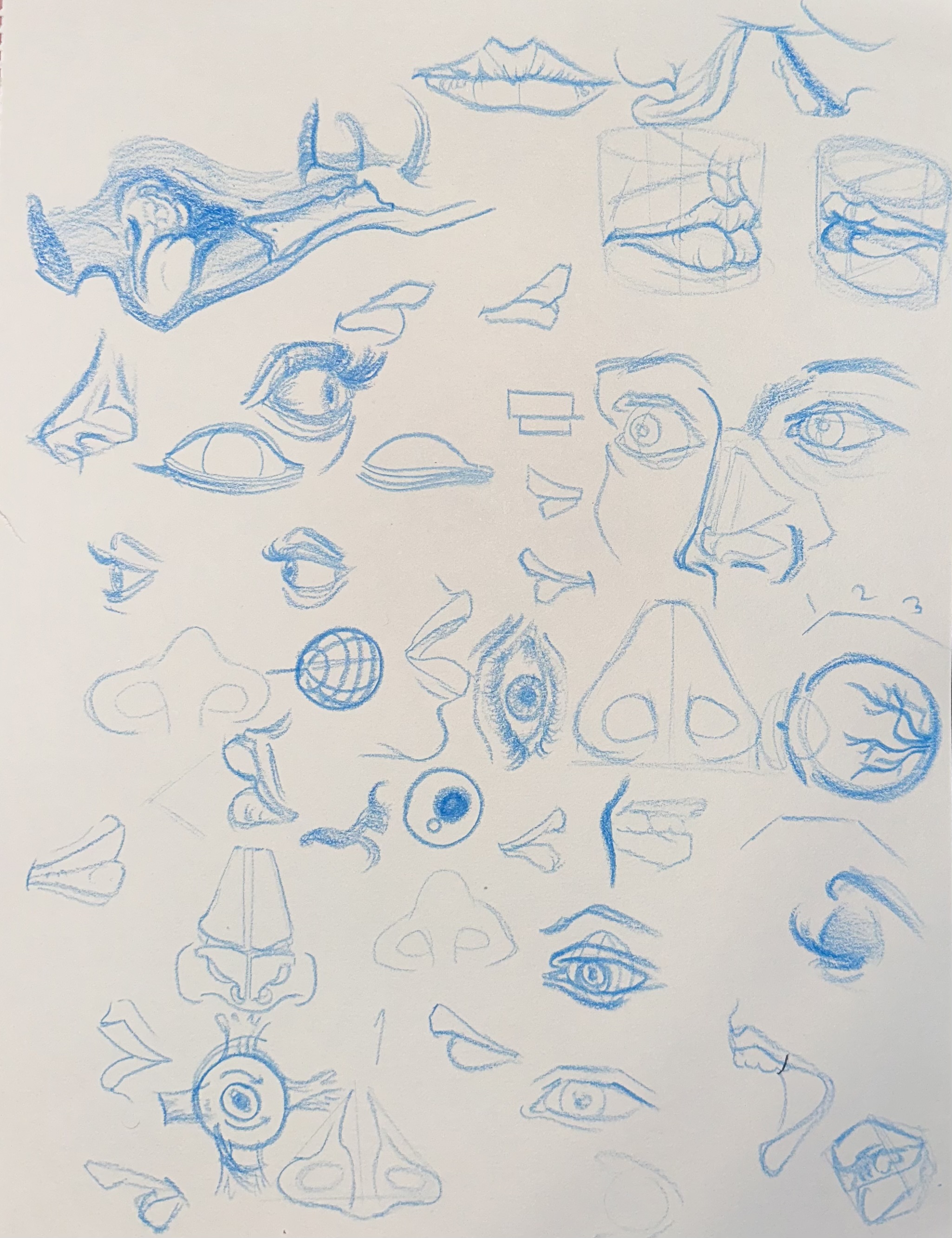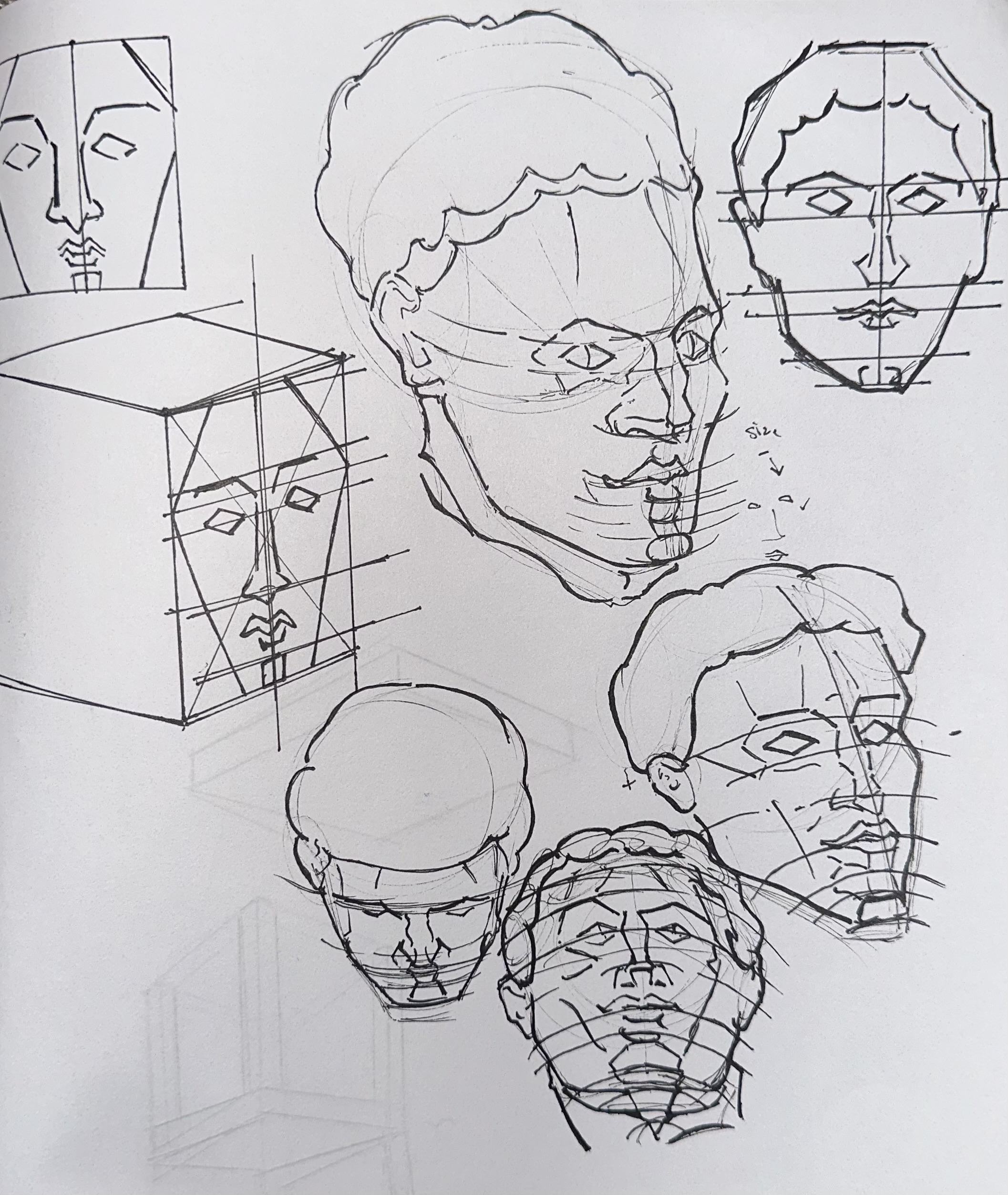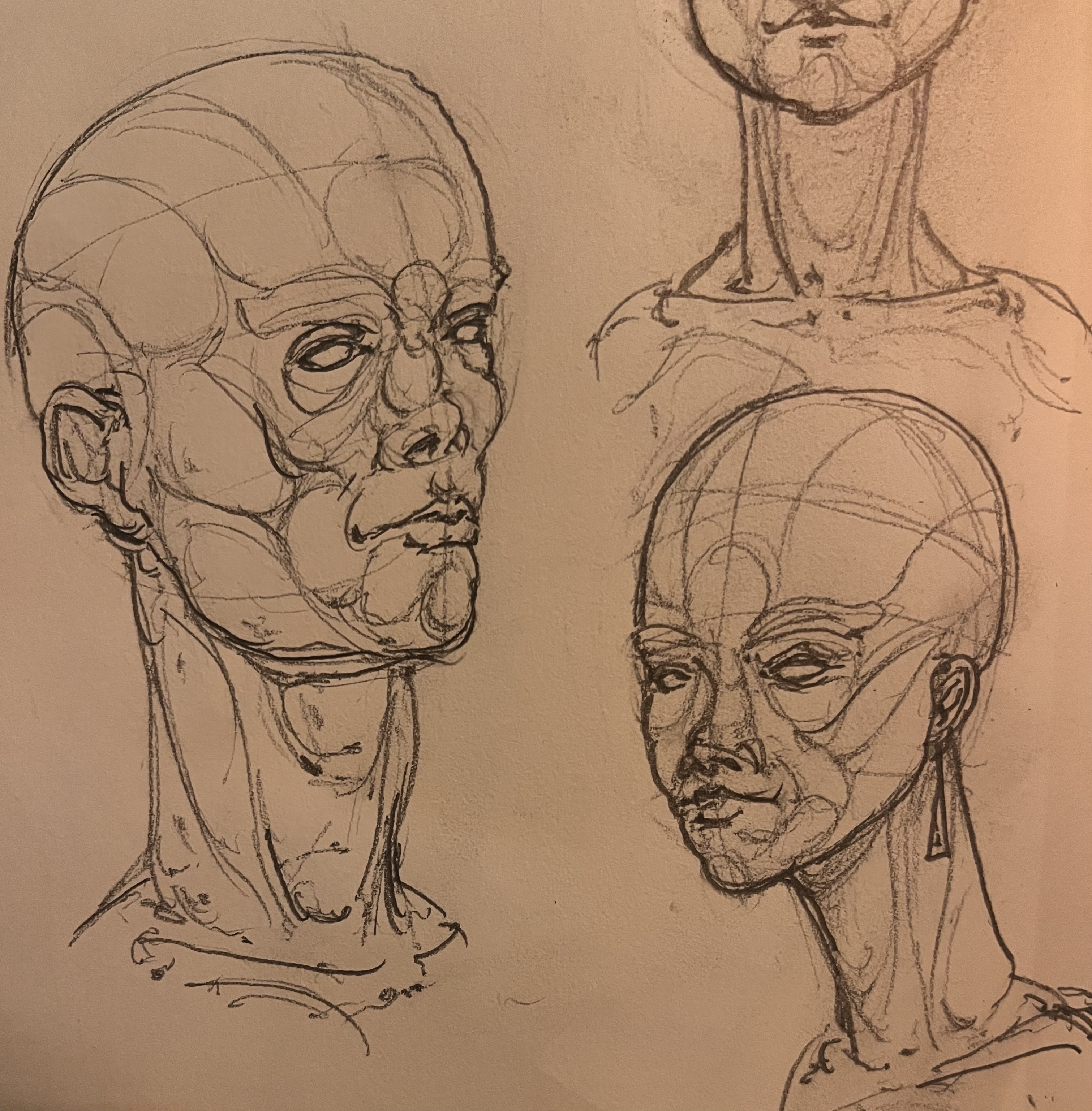 Today’s studies. Trying to just gesture the planes of the face and get a feel for how everything connects, so went a little goofy with these