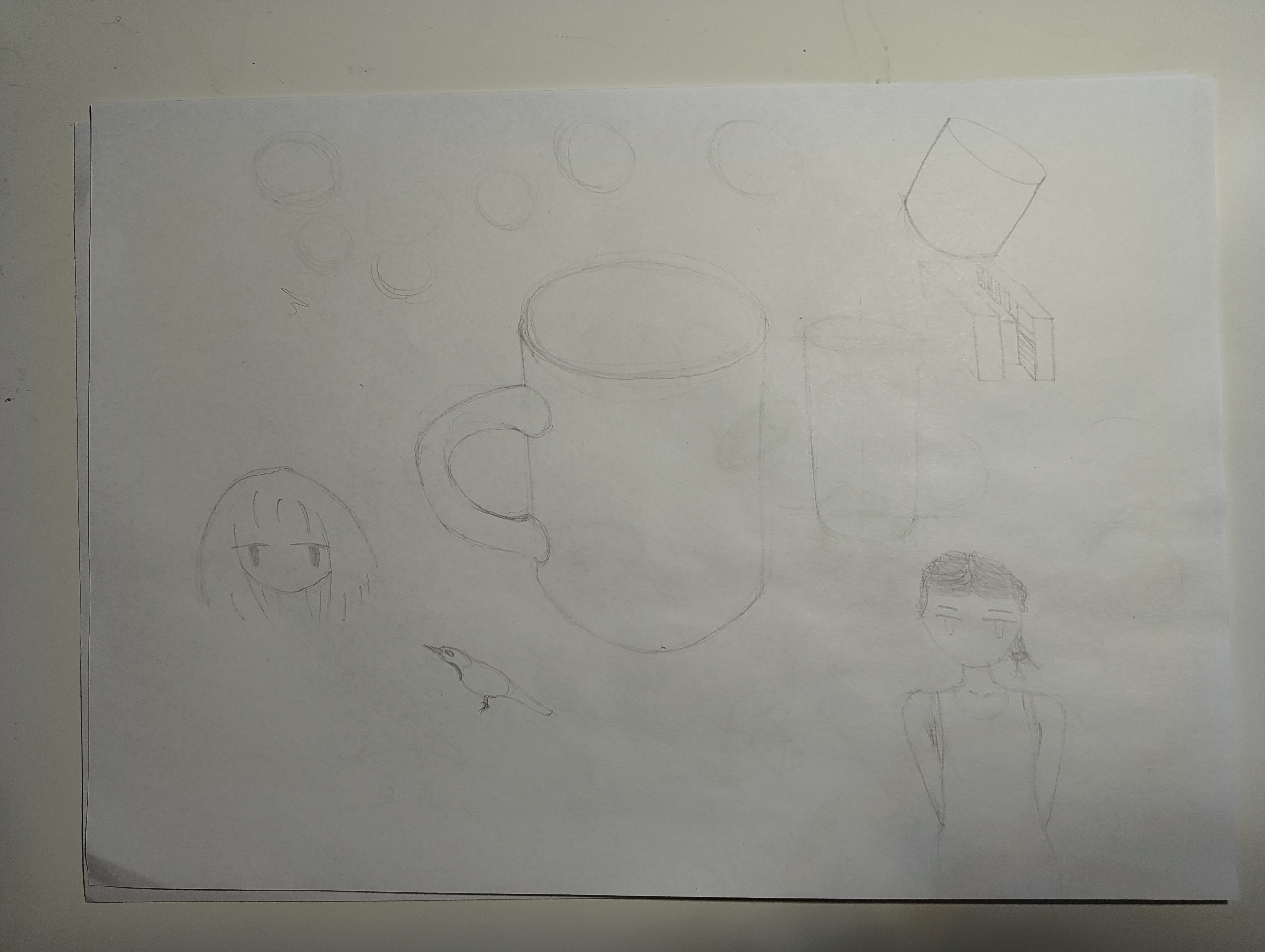>>7893287Because you have no sense of perspective (which is okay, you are a newcomer)Next time try using construction lines even though your subject is very simple. It helps have a sense of placing things like the handle in perspective.What you could be practicing is drawing simple cylenders like that one, but instead of a handle, try placing a sphere in a way that looks natural. Draw a few different shapes at different angles and place spheres or other 3d shapes on top of them until your sense of space comes naturally.The book Fun With a Pencil is perfect practice for this. Early on it focuses specifically on drawing heads with this exercise, but really those fundamentals apply to pretty much everything.