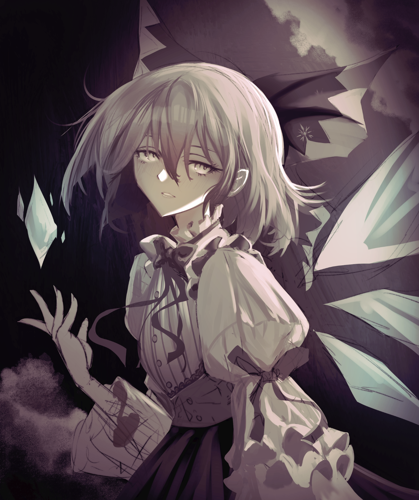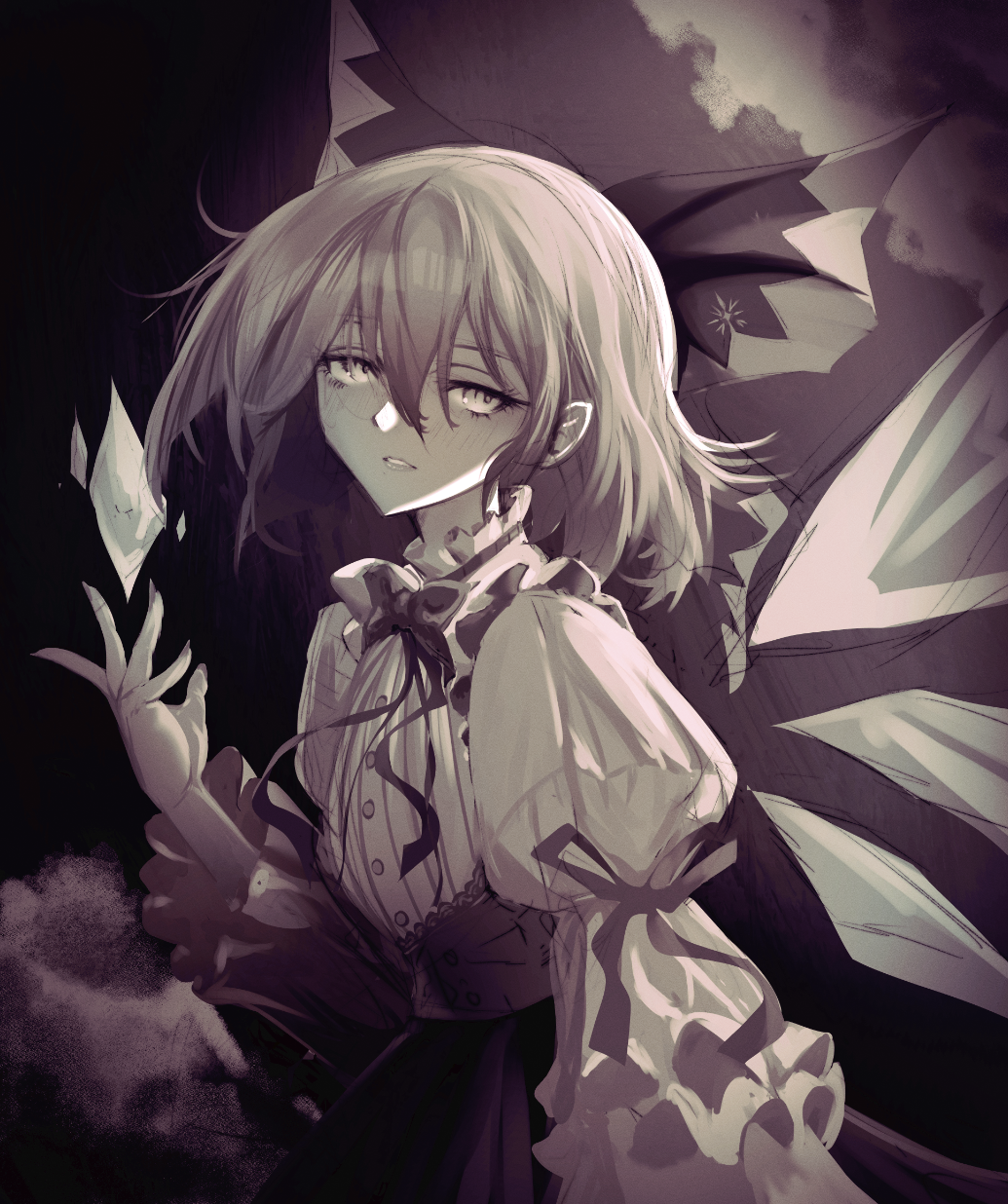 >>7893435The strongest...Why not ease up on the back light hitting the face and just make the the ice crystal she's holding as a secondary light source much stronger with a bigger radius to light up the face and ease the burden of the more rough back lighting for a double light contrast and a more dramatic shot? It would probably fit your theme better too.Cloth dynamics are good looking too btw