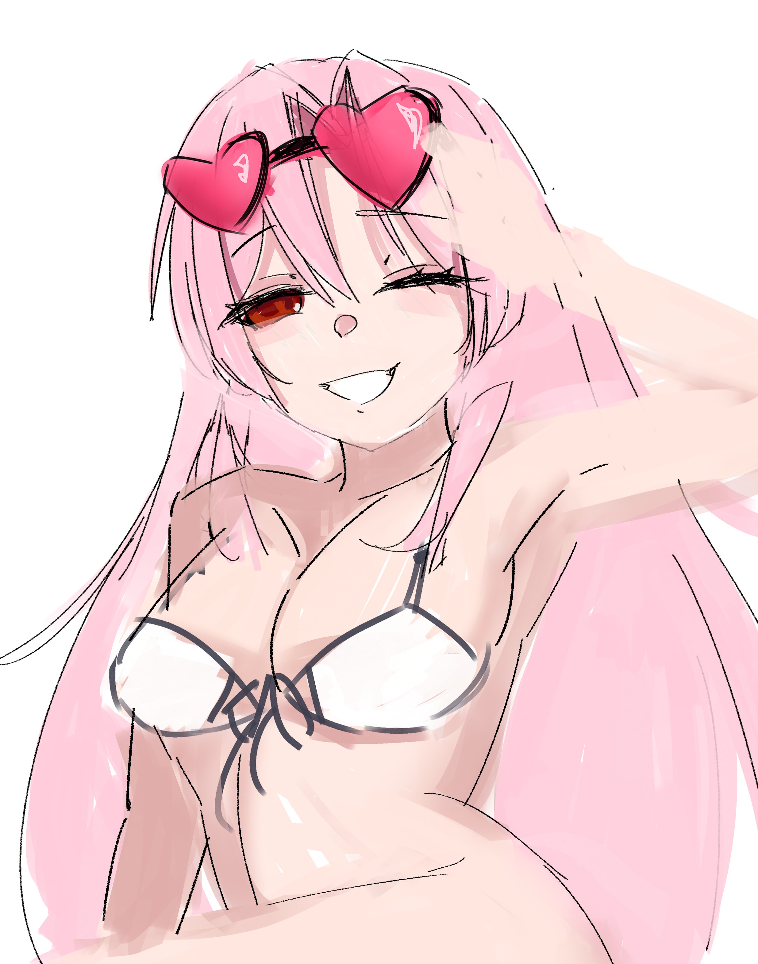 >>7893136Your face proportions are off, you need to bring the face down the skull. The arm is too long the way you're doing it. The elbow crease is too far, its going into where the joint of the elbow would be. That's all I see, IDK really know much about anime faces or even who you're trying to draw.