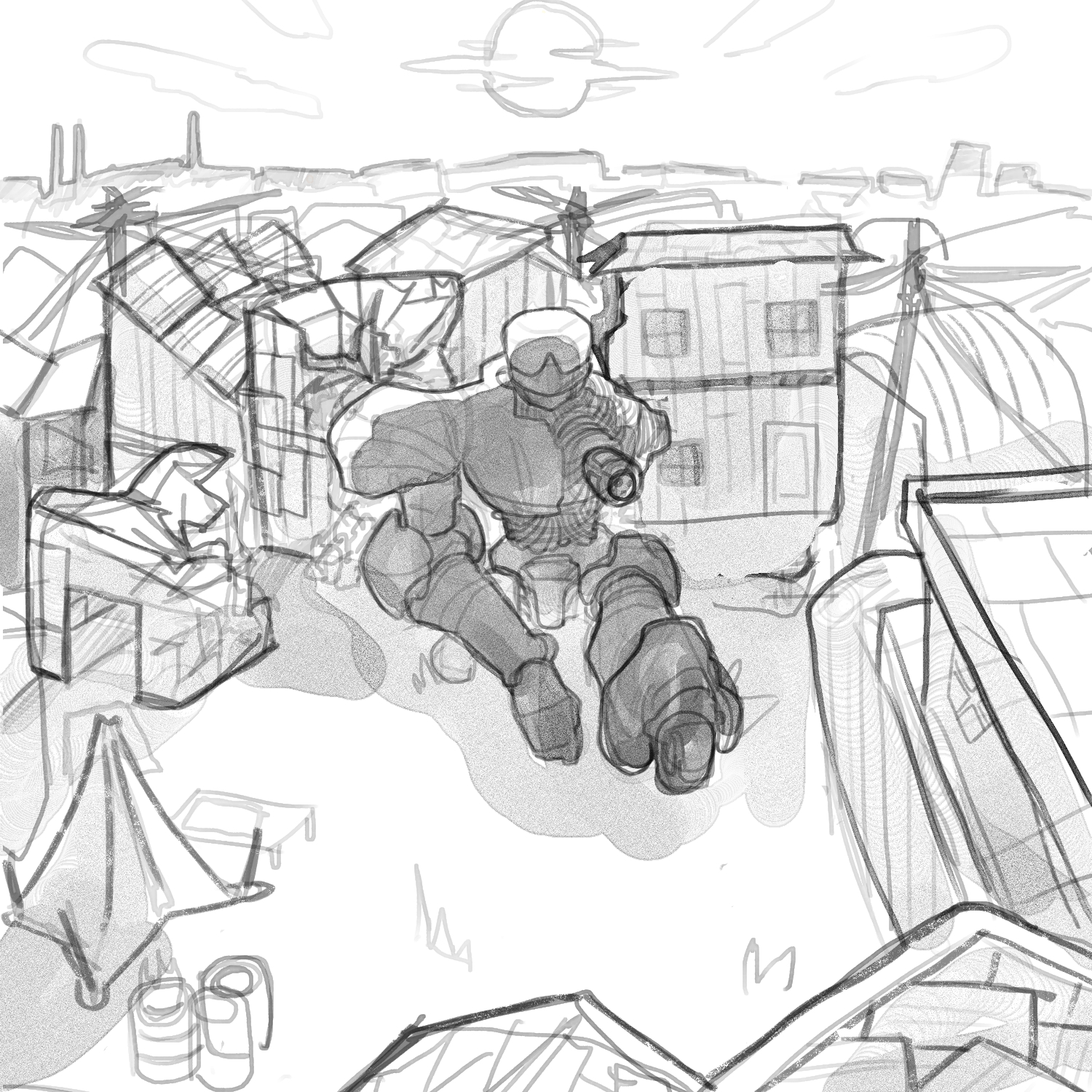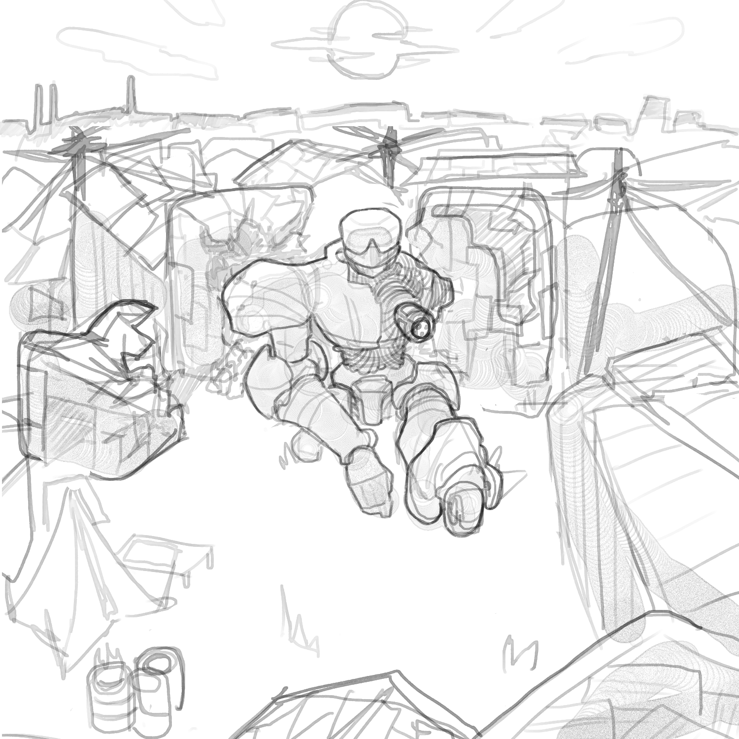 >>7896018>I don’t like planningThis is going to be a huge problem for you as an artist. Planning is literally the most important part of a drawing, it’s how everything falls into placeAs for what’s wrong with it, it’s hard to tell what I’m looking at. I see a robot, but where is he? Is it a city? Is it futuristic? Everything is drawn very ambiguously, almost as if you expect the viewer to understand it because you do. Please consider getting used to planning your drawings, because it’s really going to hurt you as an artist if you don’t.