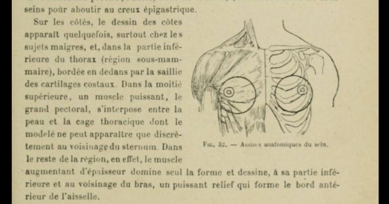 >>7896525The breasts in >>7895962 don’t necessarily “start” halfway down the sternum, that’s more of where the breast shape develops. The fatty and the muscle of the breast start at the clavicle as shown, then the actual shape of it itself starts at the halfway point like you mentioned. Like in >>7895979 if you were to isolate the circular shape like in the previous drawing, it would be around the same position.