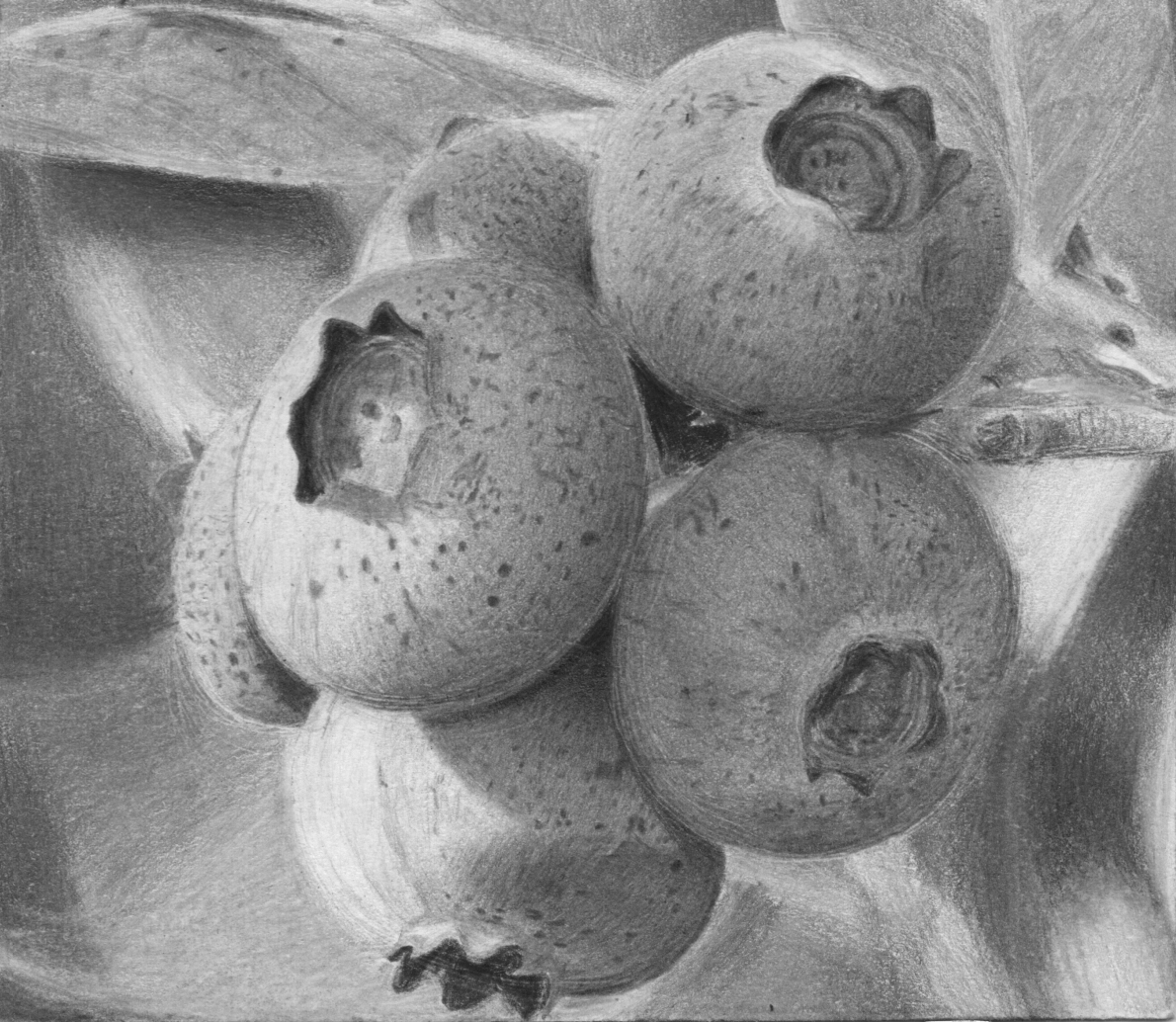 Also, start with simpler photos then more complex ones. Copying one apple would be a bit easier than multiple blueberries for example. Draw smaller so you can finish it faster. Copy grayscale photos too, for the same reason. You'll make proportional mistakes earlier on in the drawing stage. Often you won't notice until later on, so it's better if you finish many smaller drawings to get more practice in the beginning stages of the process.