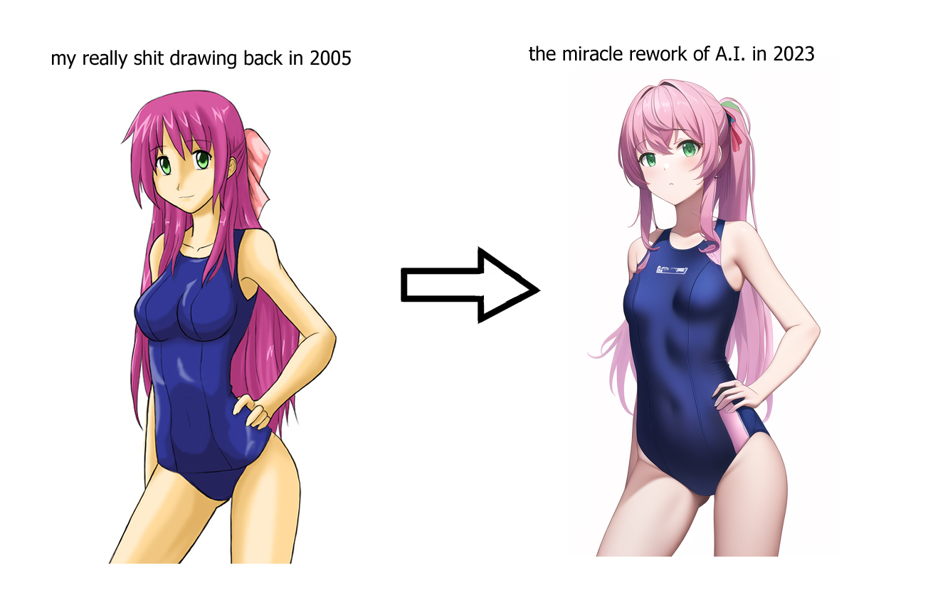 To think, if he'd drawn in those 21 years, he could have drawn something more interesting than a 3/4 anime girl in a swim suit in a white void.