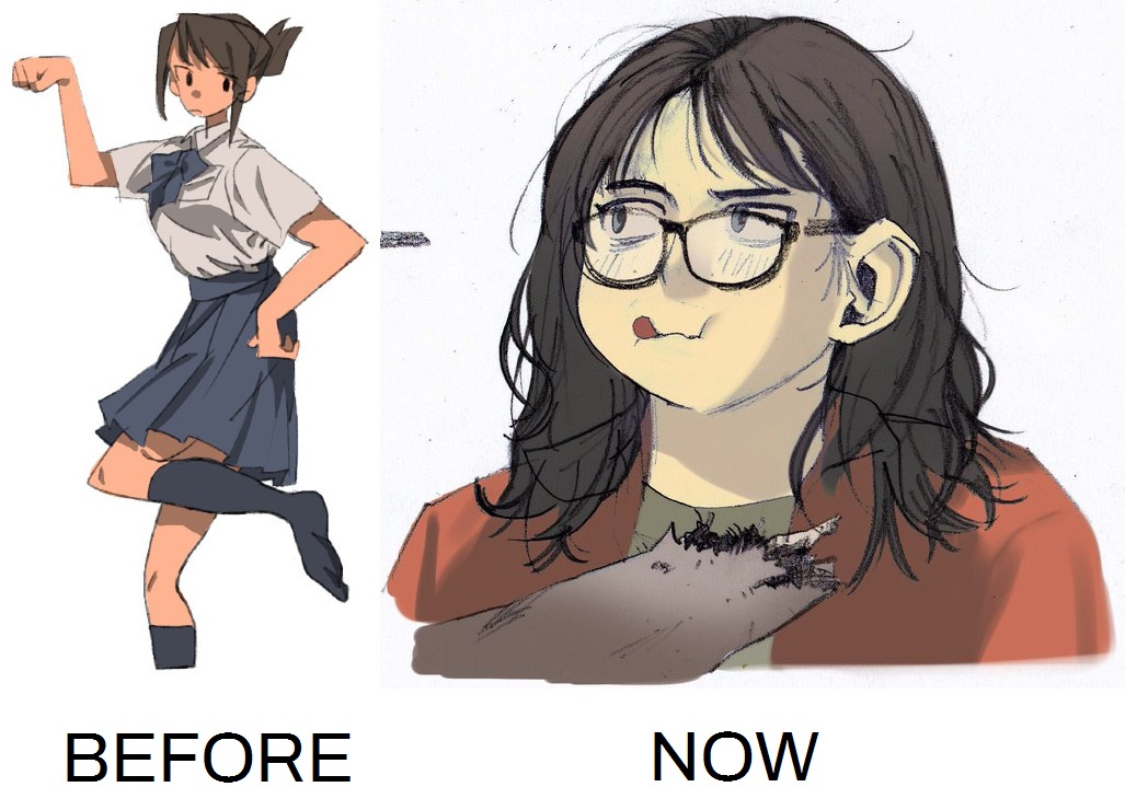 >>7902568Honestly the after looks worse than the beforeGather a mood board of the style your after, draw what interests you the most and focus on what you can do to push yourself to get a better appeal whether that be a higher saturation, cute or serious quality... find out what you wish to express and work toward that goal.Good luck anon