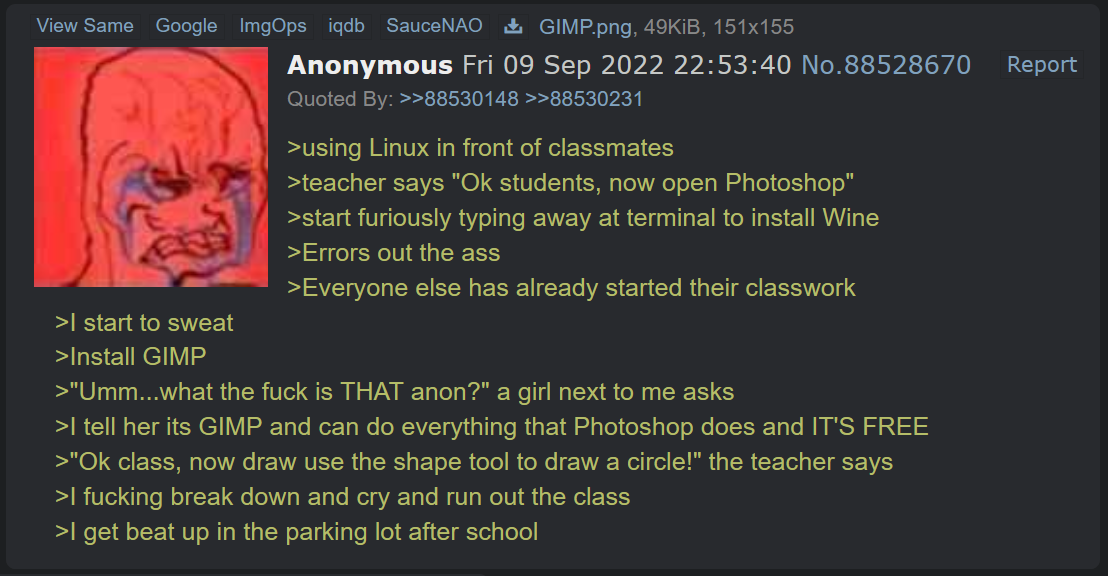 >>7903887Come home, anon.>>7904100I love Linux, but this is hilarious.