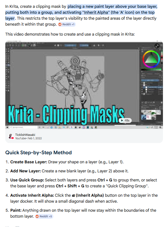 The funny thing is, I use that eraser-inversion thing in CSP, but I still remember being annoyed at Krita having it by default, because sometimes I do want a normal-ass eraser. It's a single shortcut to enable it in CSP on any brush of your choice.I don't feel that strongly about that particular issue in a sense, but I think it reflects a deeper problem that the program is intuitive among a class or programs that are already unintuitive, and bloated.For example, why is it this complicated to make a clipping layer in Krita? Why isn't it a single icon click like in virtually every other painting app I've tried?I had to look this shit up to even find out how to do it. Crazy.