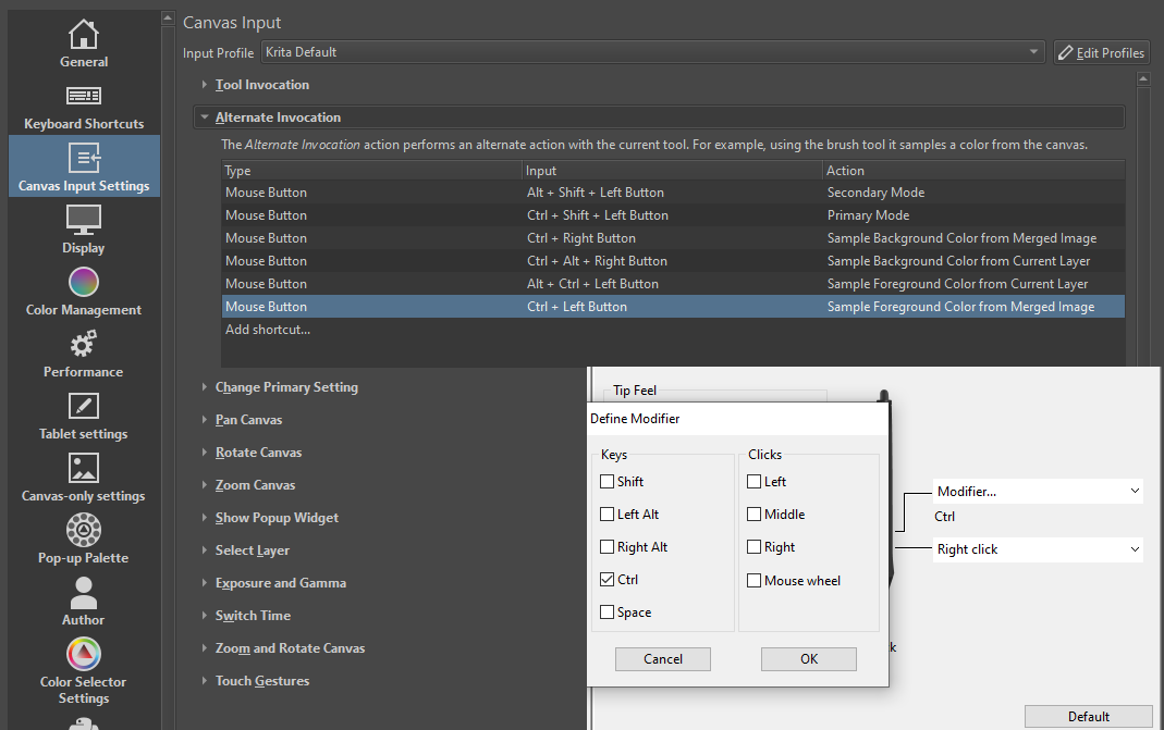 >>7905357not the anon you're arguing with but>I can't assign Ctrl to my stylus in Wacom settings for whatever reason.there's no fucking way the new wacom drivers are legitimately that dogshit, i refuse to believe itbottom right of my pic: ctrl bound to second button, PTH-851>And I can't change the shortcut for this specific action in Kritafound this shit in 3 minutesthis is literally the first time i've ever installed krita, i mainly use CSP, but the millisecond i read "can't rebind keys" directed at open sauce software i knew i was reading 10000% certified bullshitthose niggas LOOOOOOVE to rice, there's a fucking keybind to open up the help menuwho the fuck needs a keybind to open up the help menu