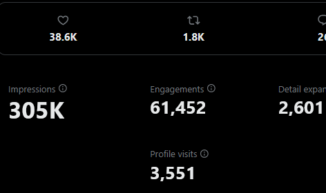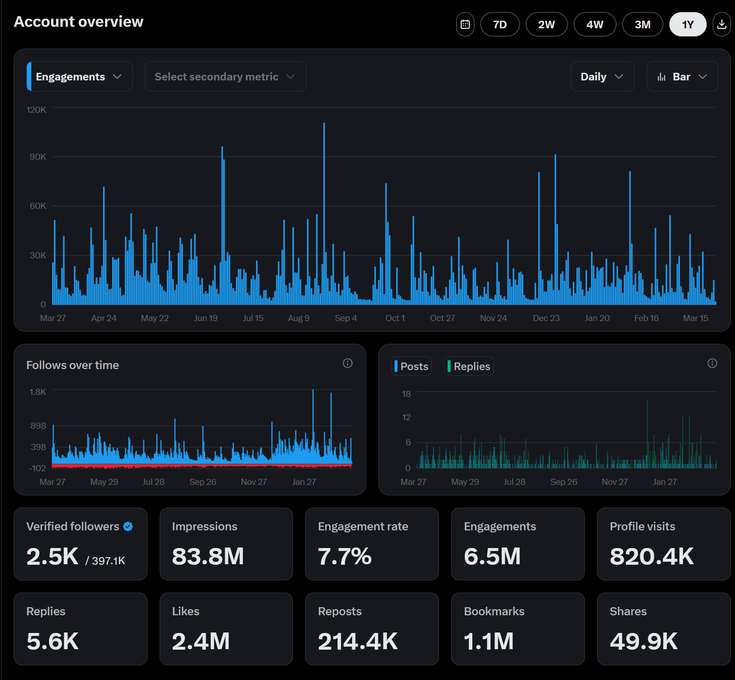 Here is my twitter engagement from the past year. This is not to brag, it's not as high as it could be, but this is just for the sake of showing you I do have a following.