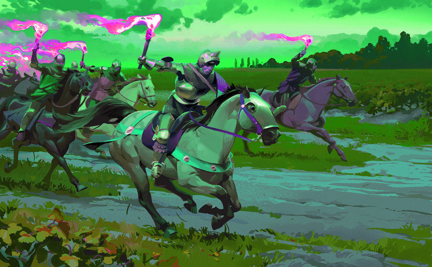 >>7907530>Pic semi related, an example of a palette that feels almost there but not quiteIts not there because it doesnt have any "sunlight" anywhere, the grass is lit but there are no highlights. It kinda looks like they got some haze or overcast even. As for everything else, you just get better at everything as you draw so you'll be able to spot mistakes more.As for hue or saturation specifically, just focus on the values, values matter more, and this does not have a highlight. Only the bird has a highlight around it and it looks off/weird with the sparkles.