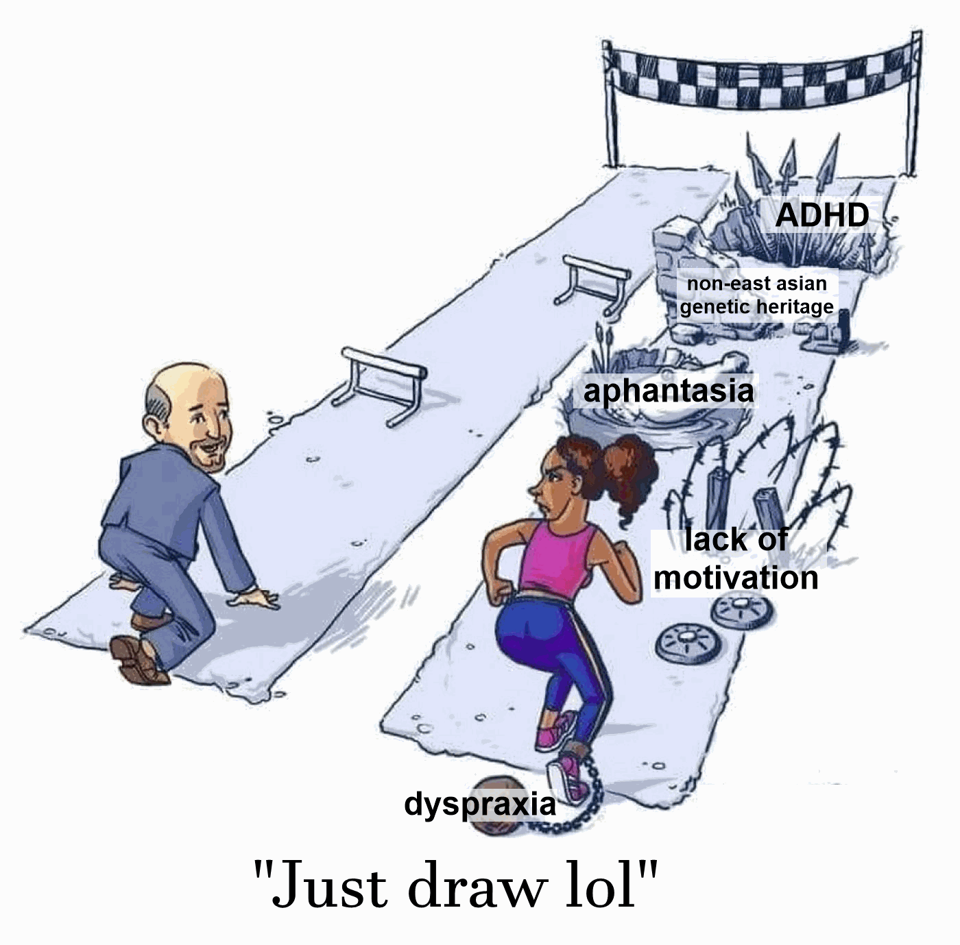 it never fucking ends. How much you've already drawn doesn't fucking matter because time only goes forward. You can be drawing for ten years and you'll still have to draw tomorrow. You know what the definition of insanity is? Doing the same shit over and over expecting a different result. Sure drawing is fun and I'm good at it, but I still have to spend my own energy and time each time the same as when I just started drawing.