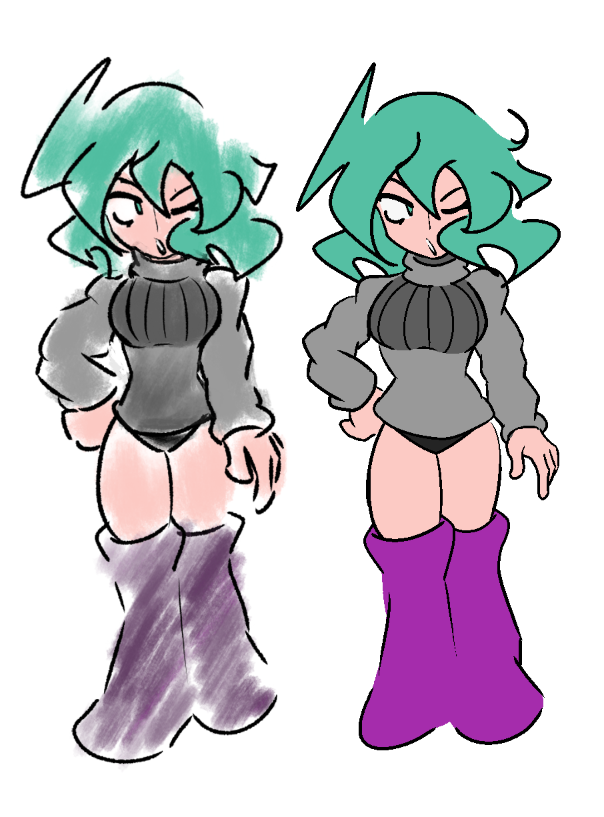 hey lads, started out drawing for a week since like 20-25 years or so, so heres my WIPi kinda like this artstyle with the celshade, I have been watching some dude on Twitter called Ccrawlerart that has this sort of style and I decided to kinda 'adopt' it for just a few minutes of my time :-D>>7912804i really dig it, except for the knees being super thick, i feel like you forgot to separate the knee with the lower leg part there, keep at it boss>>7912838lookin baller, just needs some attention to the hand with highlights and stuff like the other anon said >>7912855