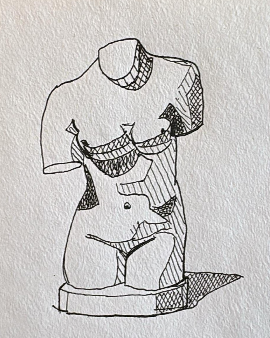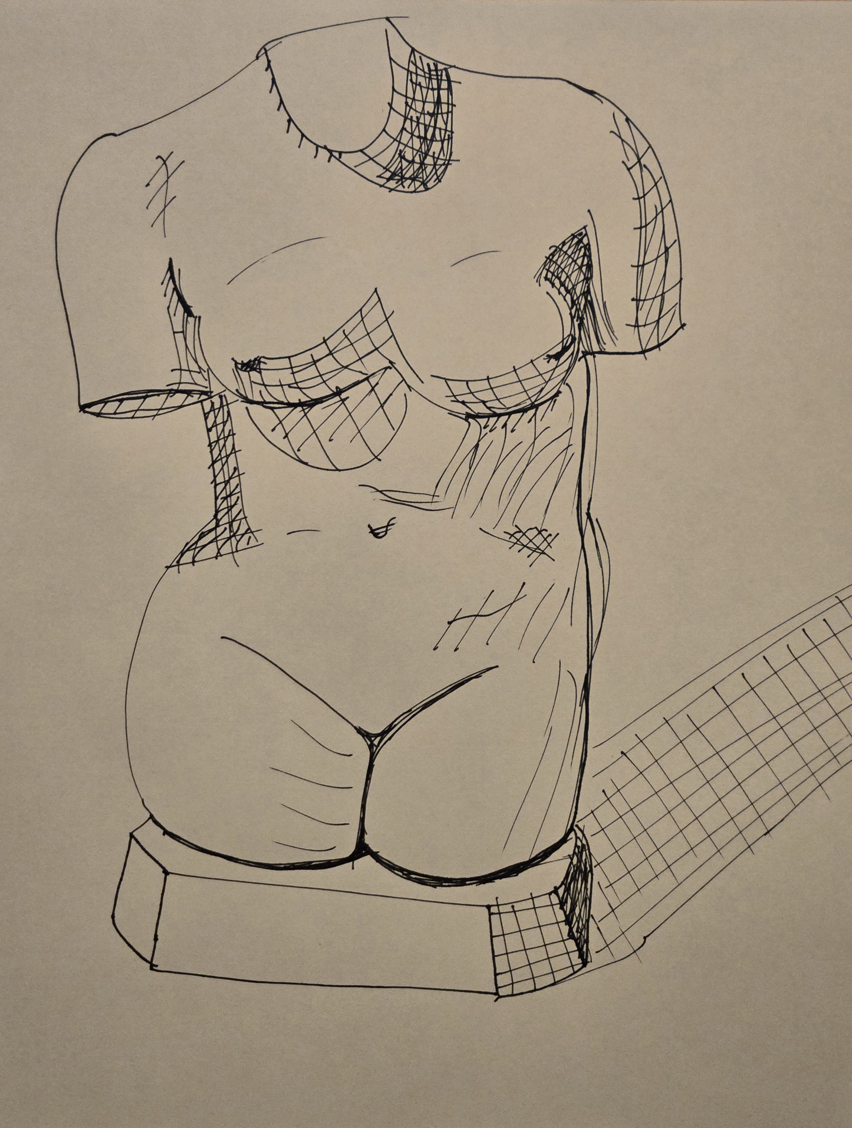 Quick and dirty look at the Venus torso from the last thread. Using a pen actually feels incredibly freeing after beating my face against the tablet and suffering with a pencil. I'm noticing I have a habit of making torsos (possibly shapes in general) wider than they should be