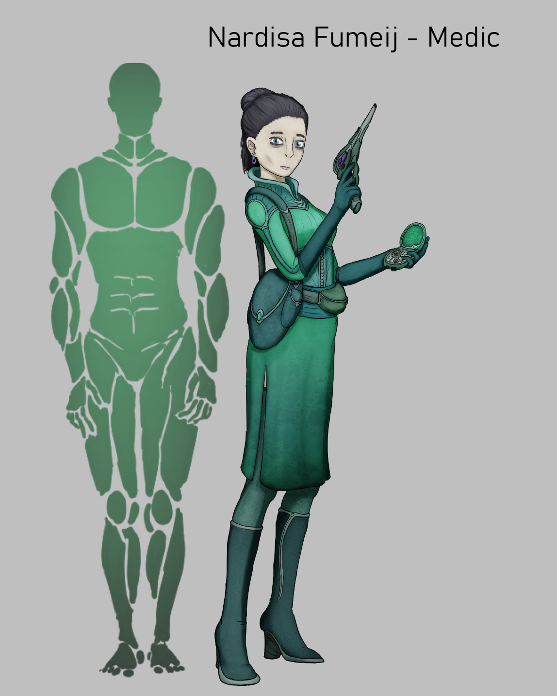 more outlaw star>>7921523oversized and stretched the torso, also seems you are a bit lost on where to place ribcage and abdomen lines and how these parts overlap. head is good though>>7921520needs eyes rendered more at the very least