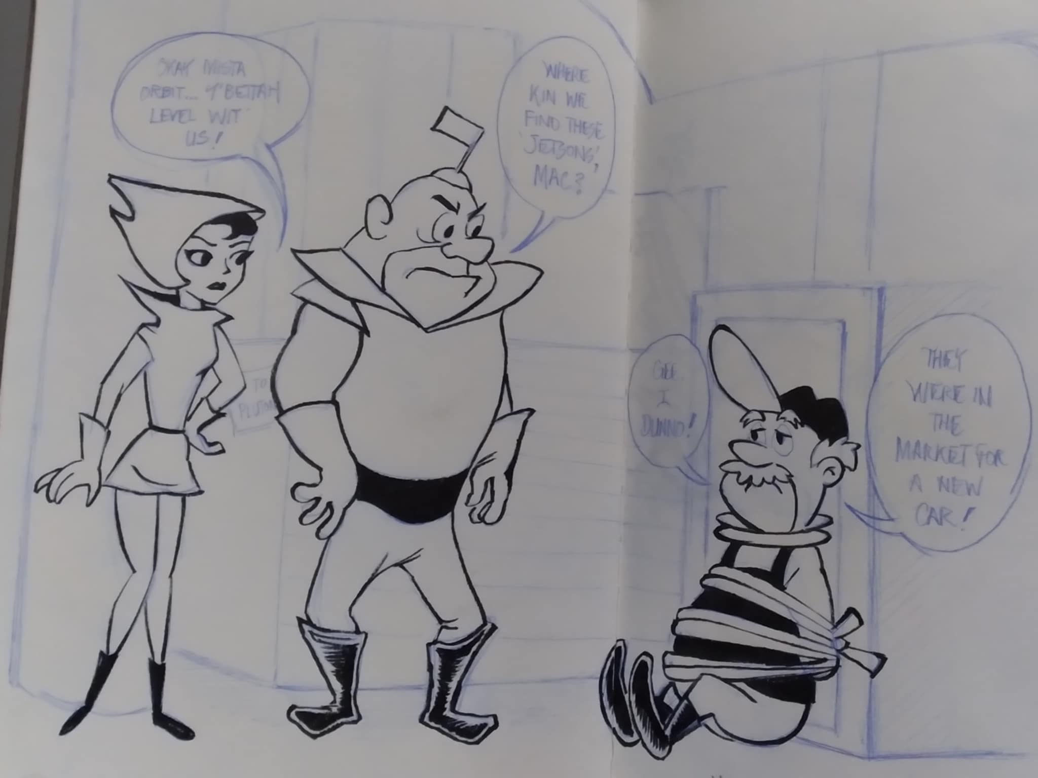 >>7921895When we first met Niles Nuclear, he was heldup by George and Jane on accident. Henry Orbit, the building's superintendent was tied up in the garage.