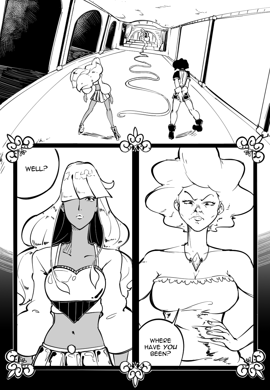 Since this is the first page of the new chapter, I tried to put extra effort into it. One of my goals for this chapter is to make it interesting to someone who doesn't know who any of the characters are, so this chapter can feel like the start of a volume.
