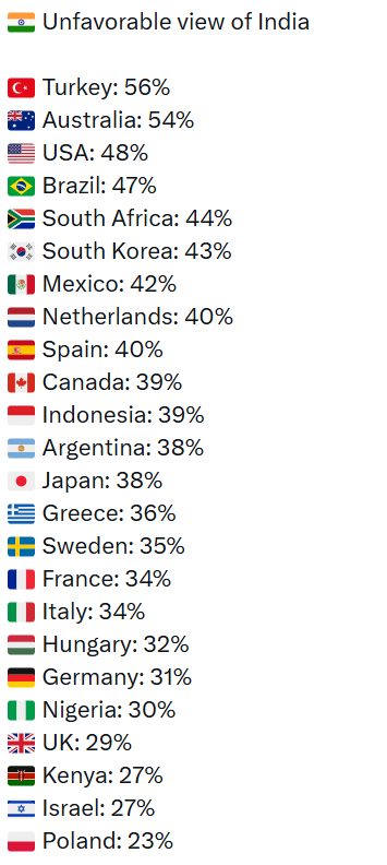 >more than half of his country have a favorable opinion of india
