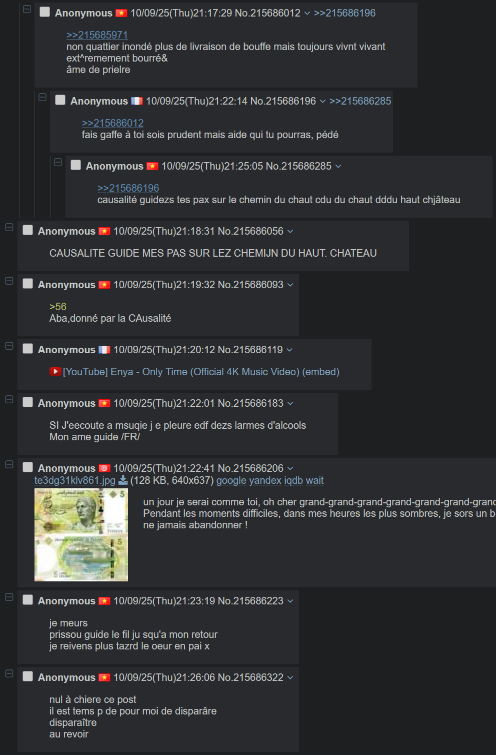 postez vos pilules noires- chaque putain de post sur /fr/ est un gros ragebait pour seum mais il est même pas là- Sui7 a toujours adoré se faire enculer et Enzo l'a probablement enculée- Léon ne rendra jamais les 20 balles d'anon- Proprio est le meilleur posteur du fil