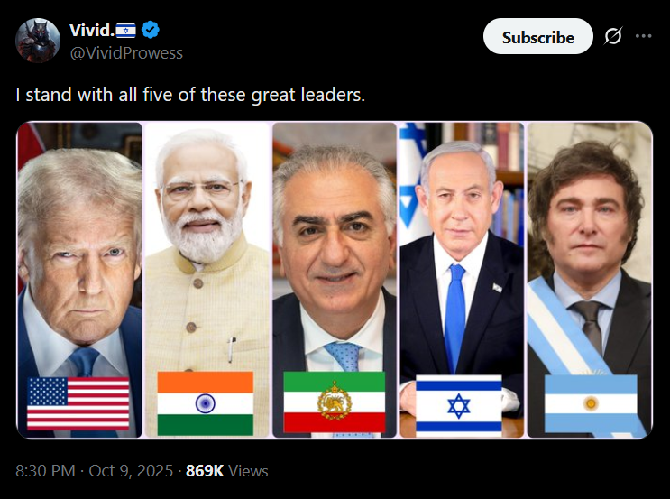 israeli flag, AI profile pic, includes an indian as "great" anything. 100% jeet