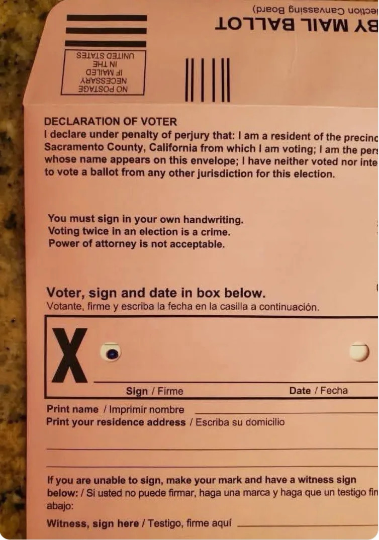 >>215806631>>215806914California is trying to rush through a proposition (prop 50) that would restructure congressional districts in the state, circumventing the independent redistricting commission. These are the ballots for that vote and if you vote 'NO' on the proposition, there is a hole in the envelop to show that you voted NO.Many voters in the state believe this is so they can discard those votes without opening the envelopes while others believe it is an intimidation tactic similar to what the fascist states of WW2 were doing.