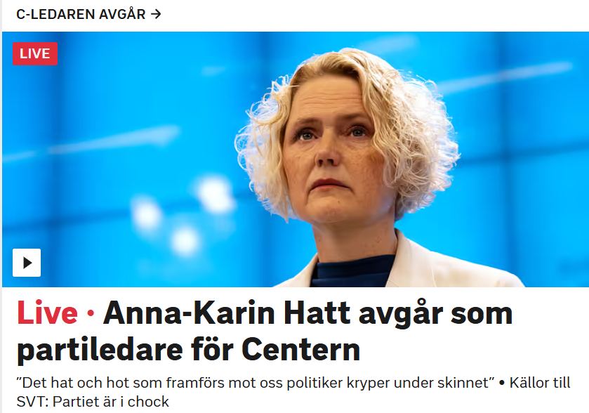 Älskar svensk politisk "discourse", där man hatar på partier, ledare, röstare, osv, och skriker sig hes över hur hemska dom är och kallar dom glåpord. Men så fort en partiledare avgår pga "hat och hot", så ska man vara så fin och rumsren och beklaga sig över hur fel det är med hat och hur synd det är om politiker.