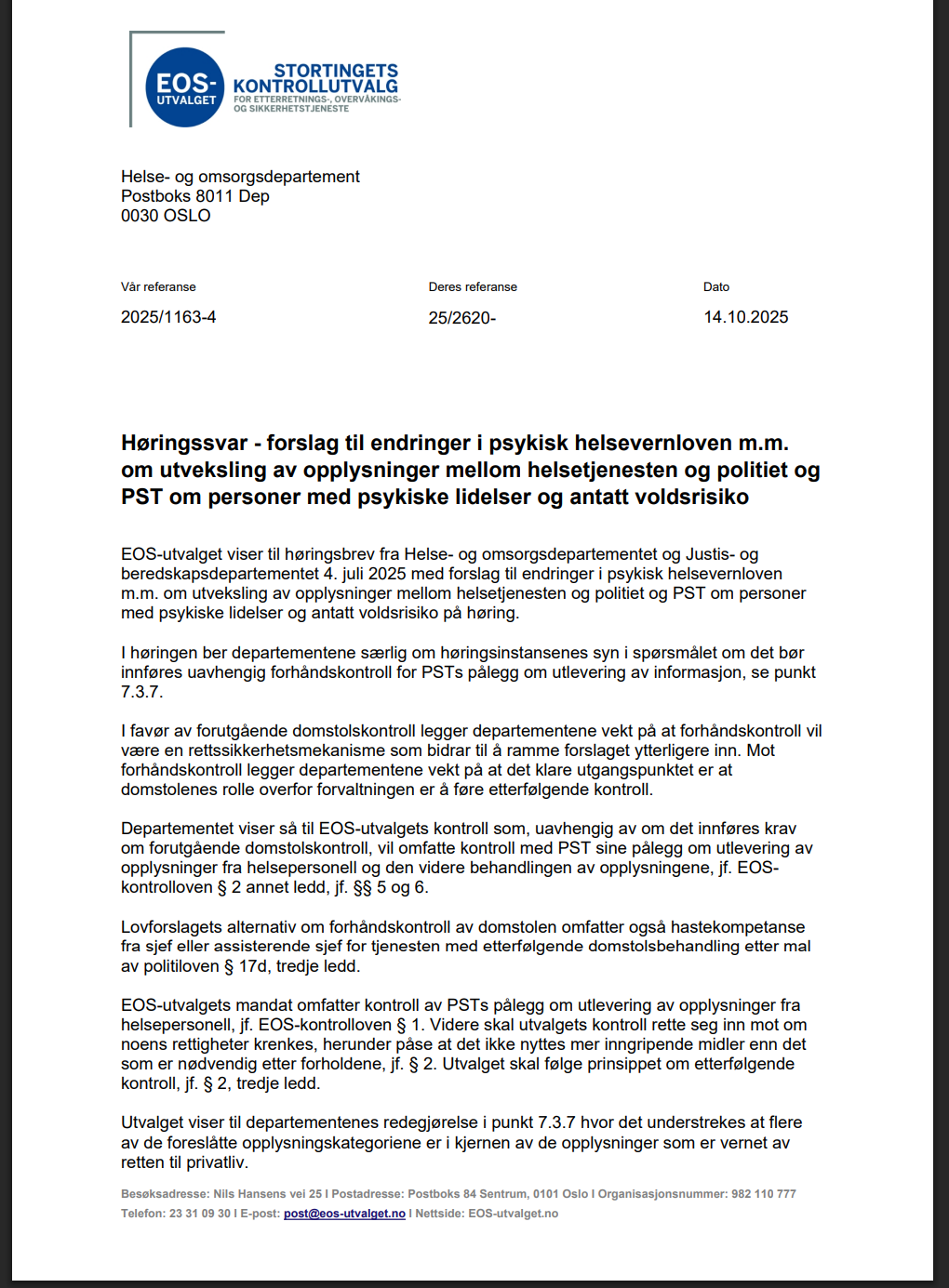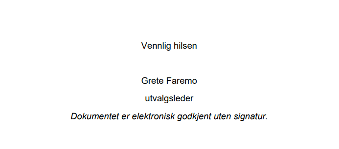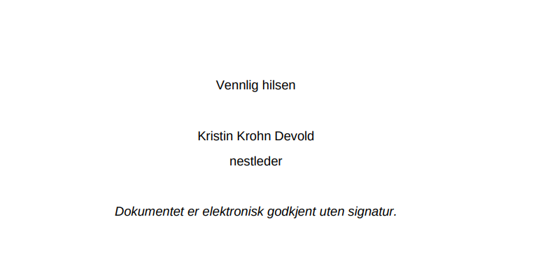 >>215873606>Med vennlig hilsenPå norsk heter det faktisk "Med hilsen" eller "Vennlig hilsen""Med vennlig hilsen" er faktisk ikke en greie.Dette vet regjeringen jævlig godt, og det er derfor Grete Faremo signerer med "Vennlig hilsen" barehttps://eos-utvalget.no/wp-content/uploads/2025/10/Horingssvar-forslag-til-endringer-i-psykisk-helsevernloven-m.m.-om-utveksling-av-opplysninger-mellom-helsetjenesten-og-politiet-og-PST-om-personer-med-psykiske-lidelser-og-antatt-voldsrisiko.pdf