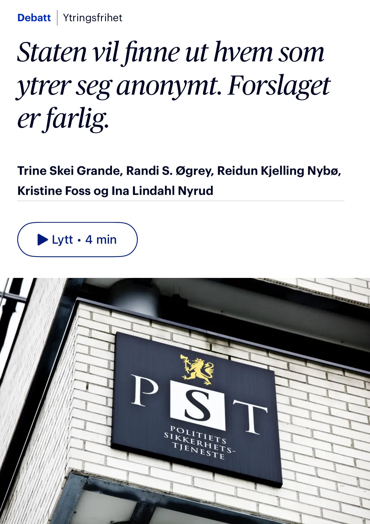 >>215875294>>215875359Det samme gjelder Kristin Krohn Devoldhttps://eos-utvalget.no/wp-content/uploads/2025/04/Horingssvar-forslag-til-endring-i-sikkerhetsloven-%C2%A7-8-4.pdf