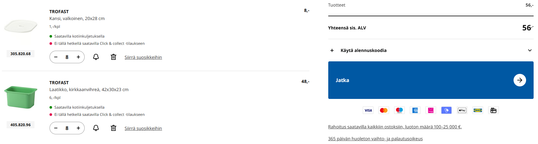 saako ikeaan jotenkin ilmaset postikulut jos tilaan ikeasta jotain kotiin