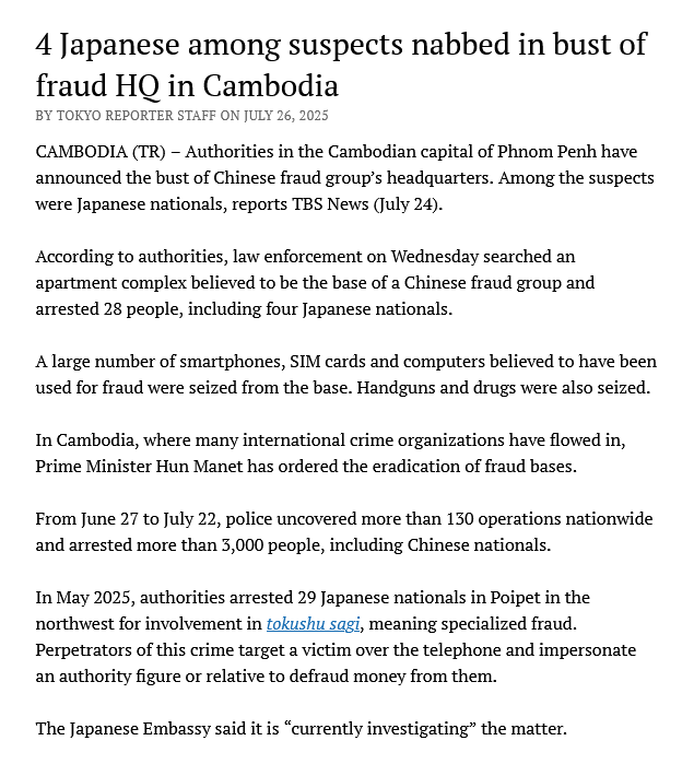 >>215892101>Japanese also run scam centers in Cambodia. Why are Japanese such criminal like this?Yakuza gotta Yakuza, they have organized crime just like anywhere else.Also, Japan has a decent number of SEA migrant workers.