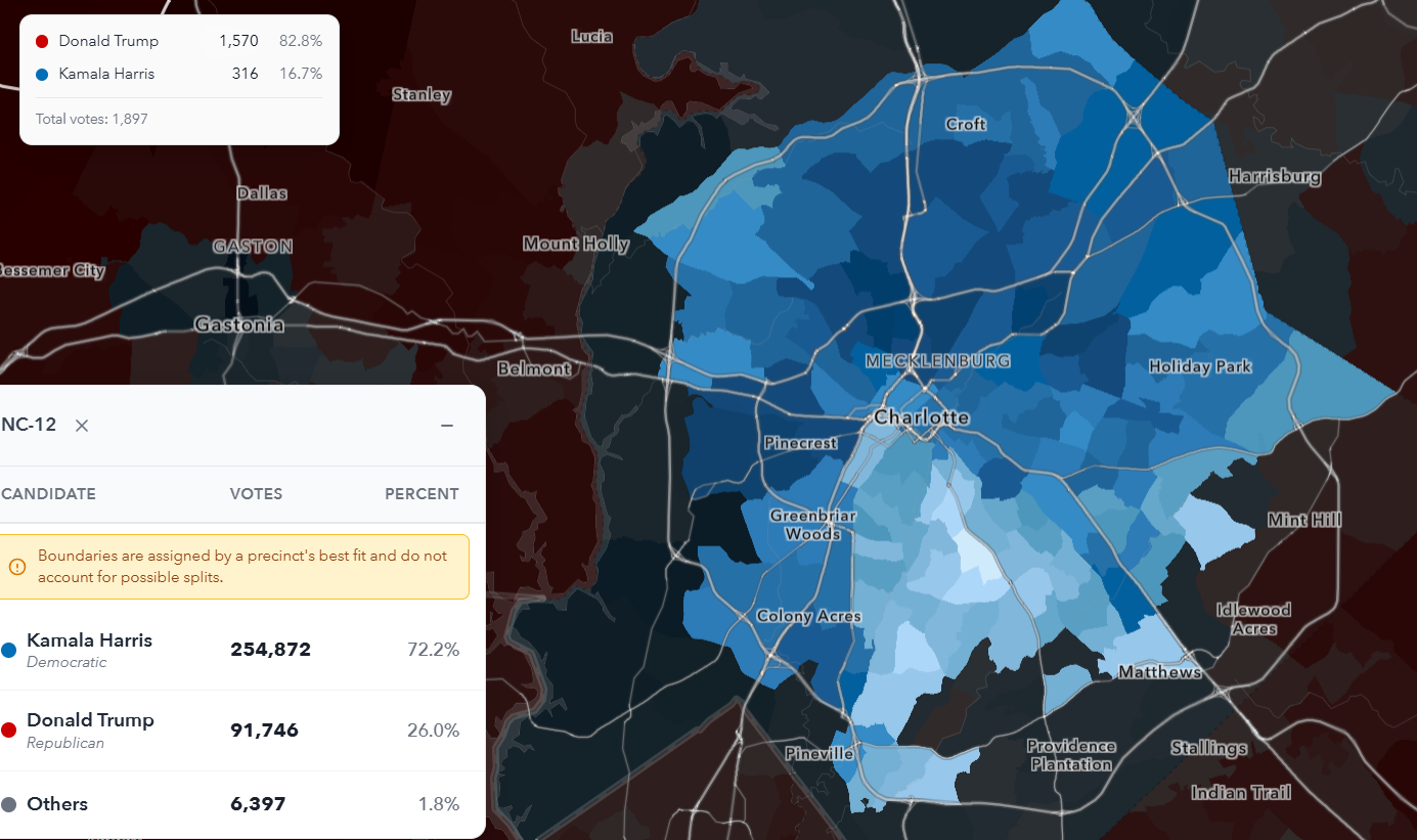 >>215903732The Charlotte district is ridiculously packed already, it does not have a single precinct that voted for Trump. Raleigh and Durham are similar, gotta be difficult cracking them without putting any Republican seats at risk